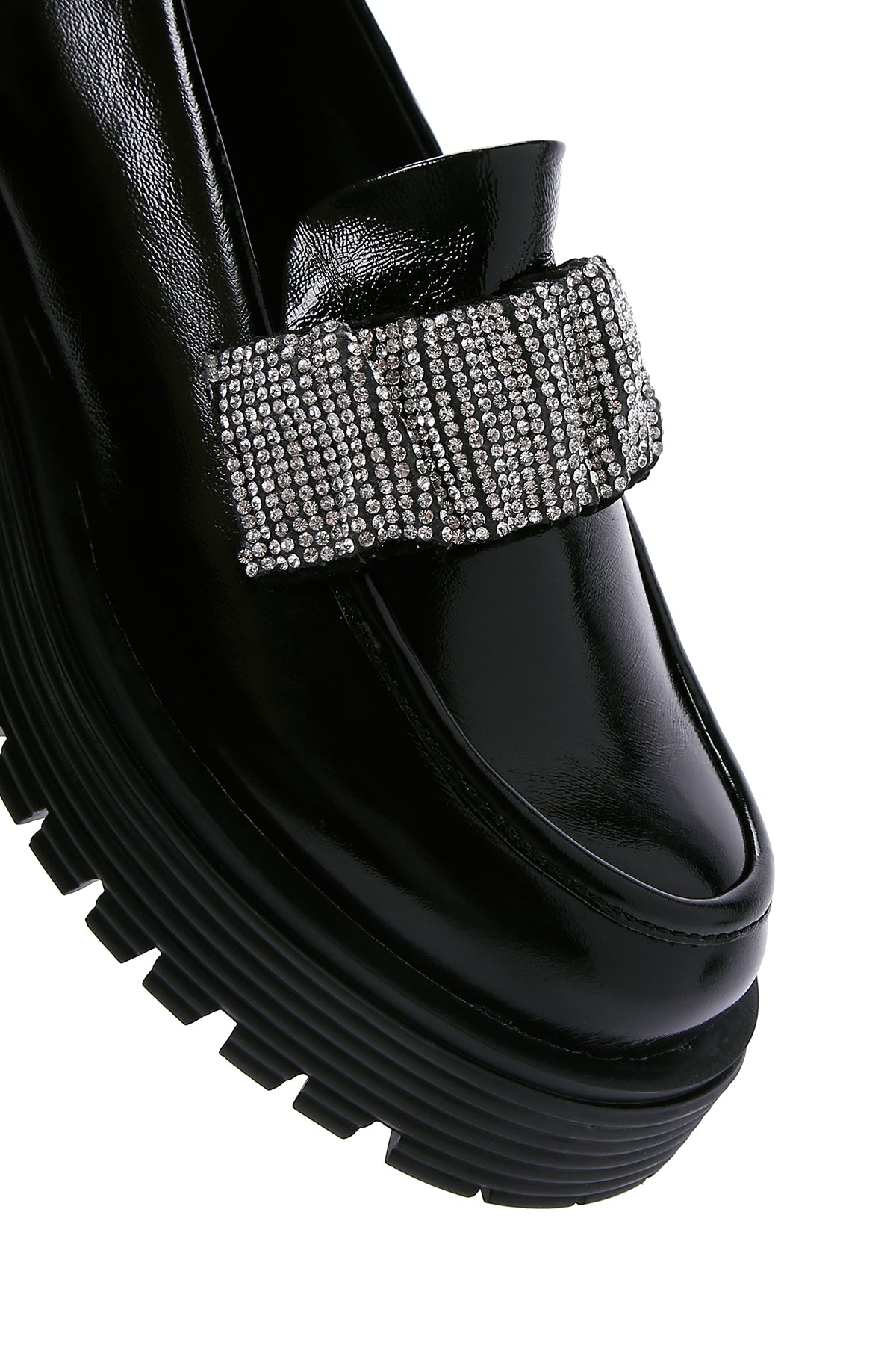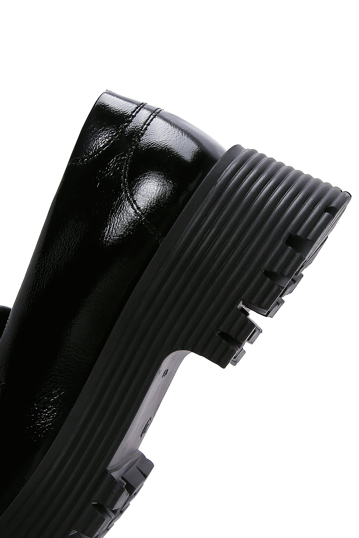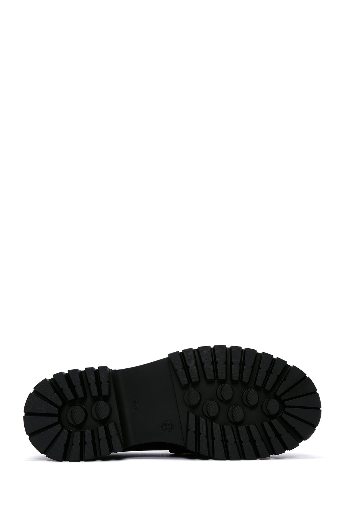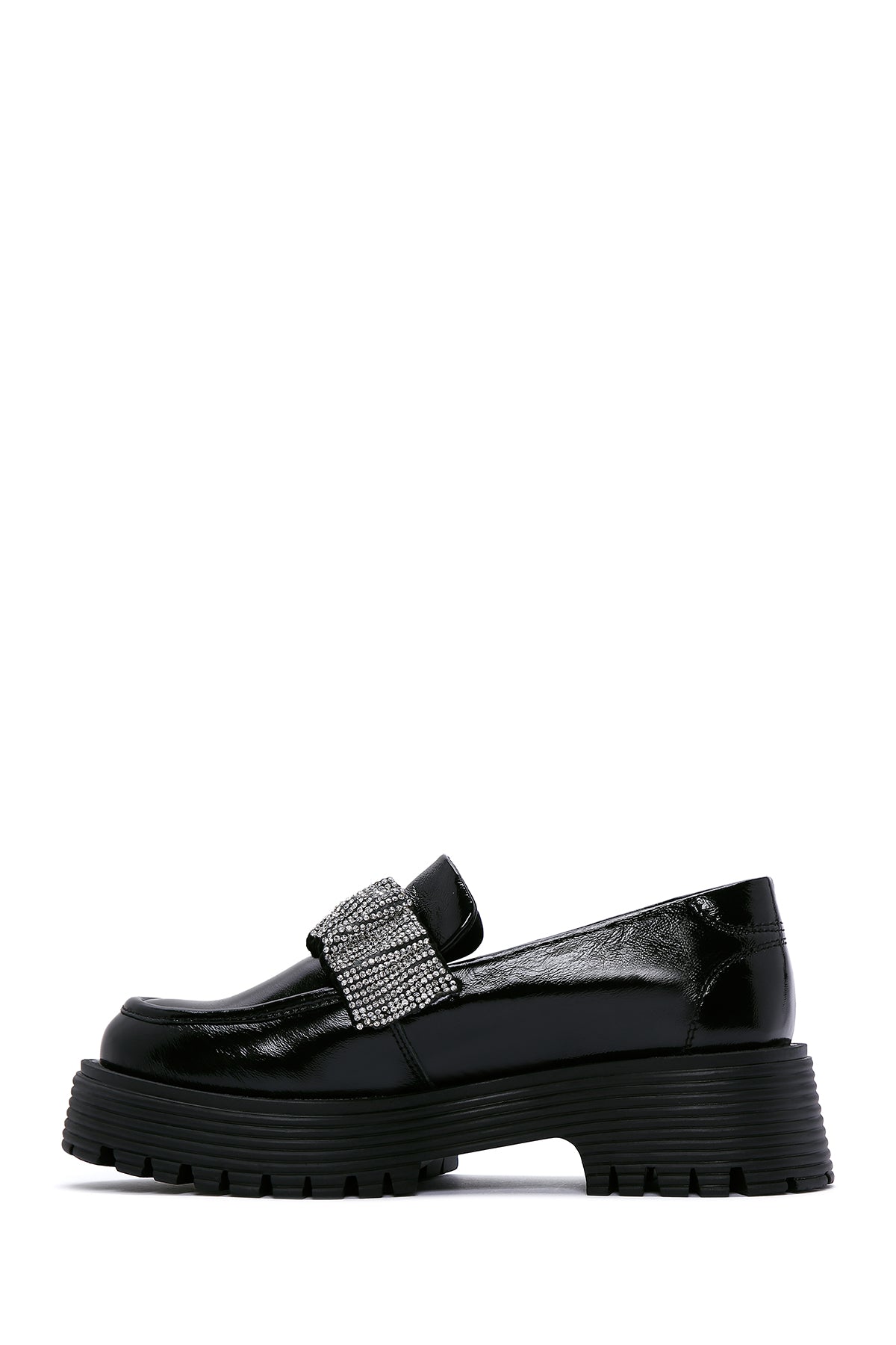 Kadın Siyah Taş Detaylı Deri Maskülen Loafer
