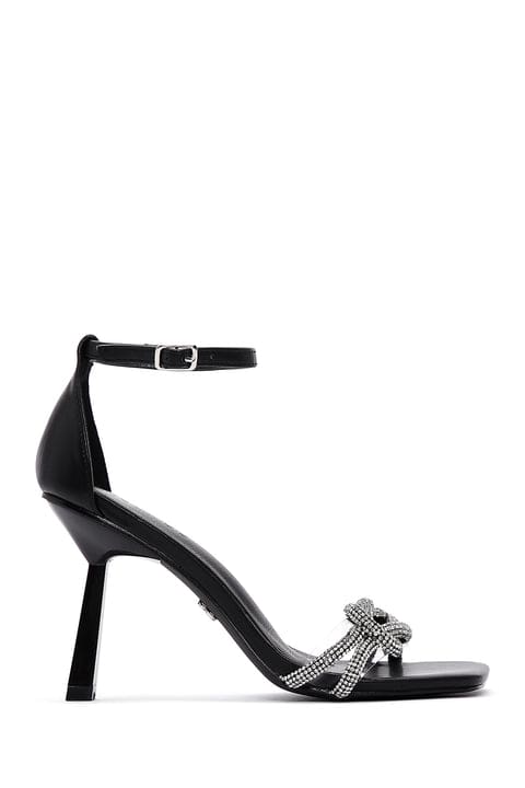 Kadın Siyah Taşlı Bilekten Bantlı İnce Topuklu Sandalet