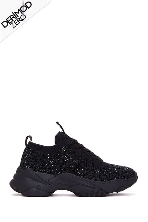 Kadın Siyah Taşlı Kalın Tabanlı Sneaker