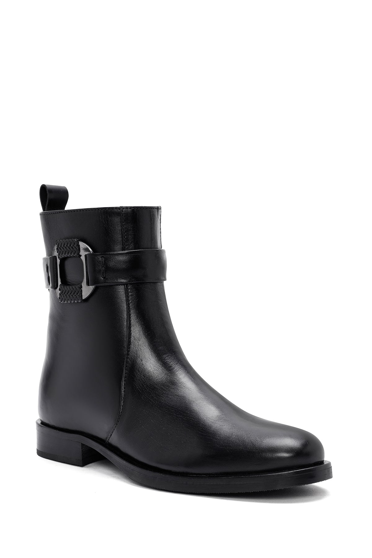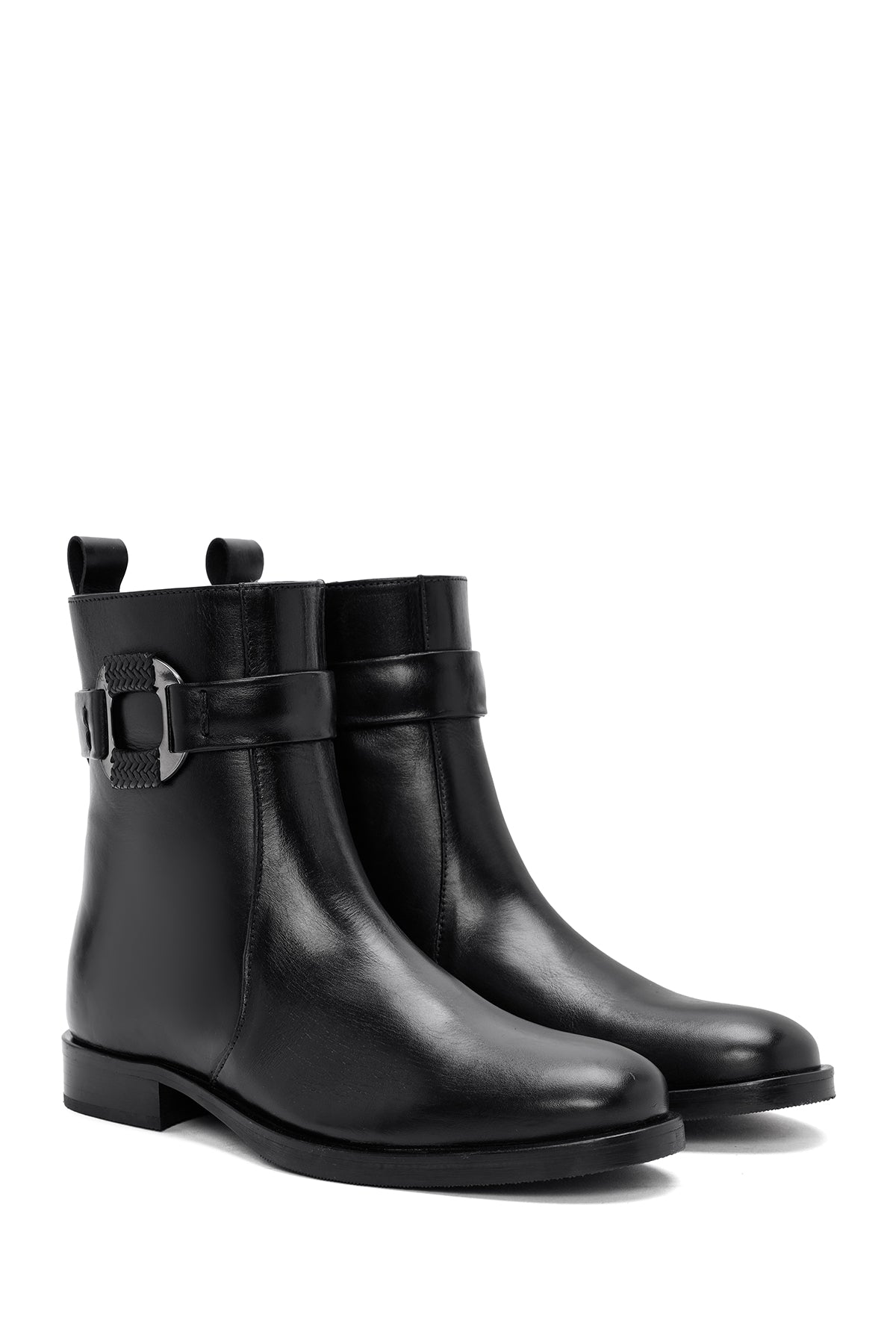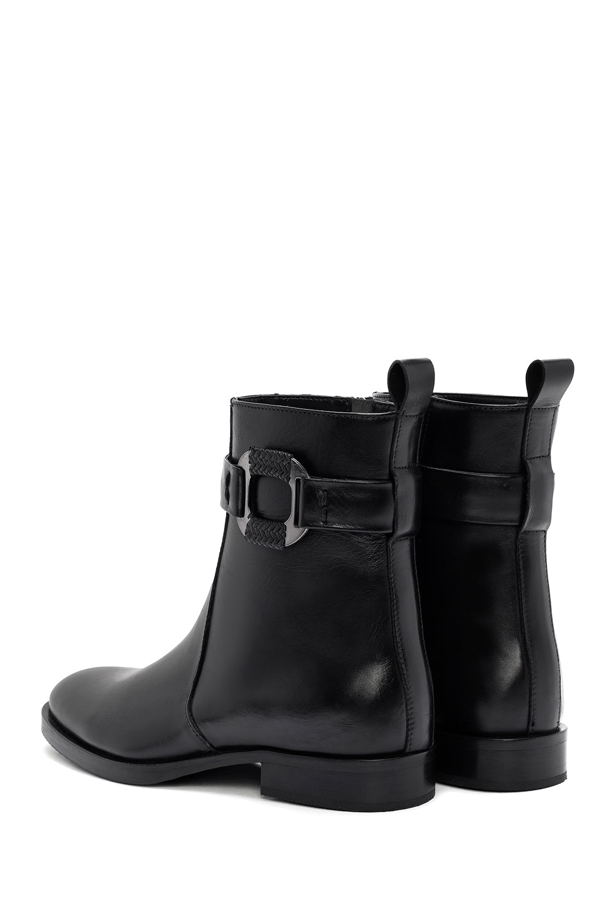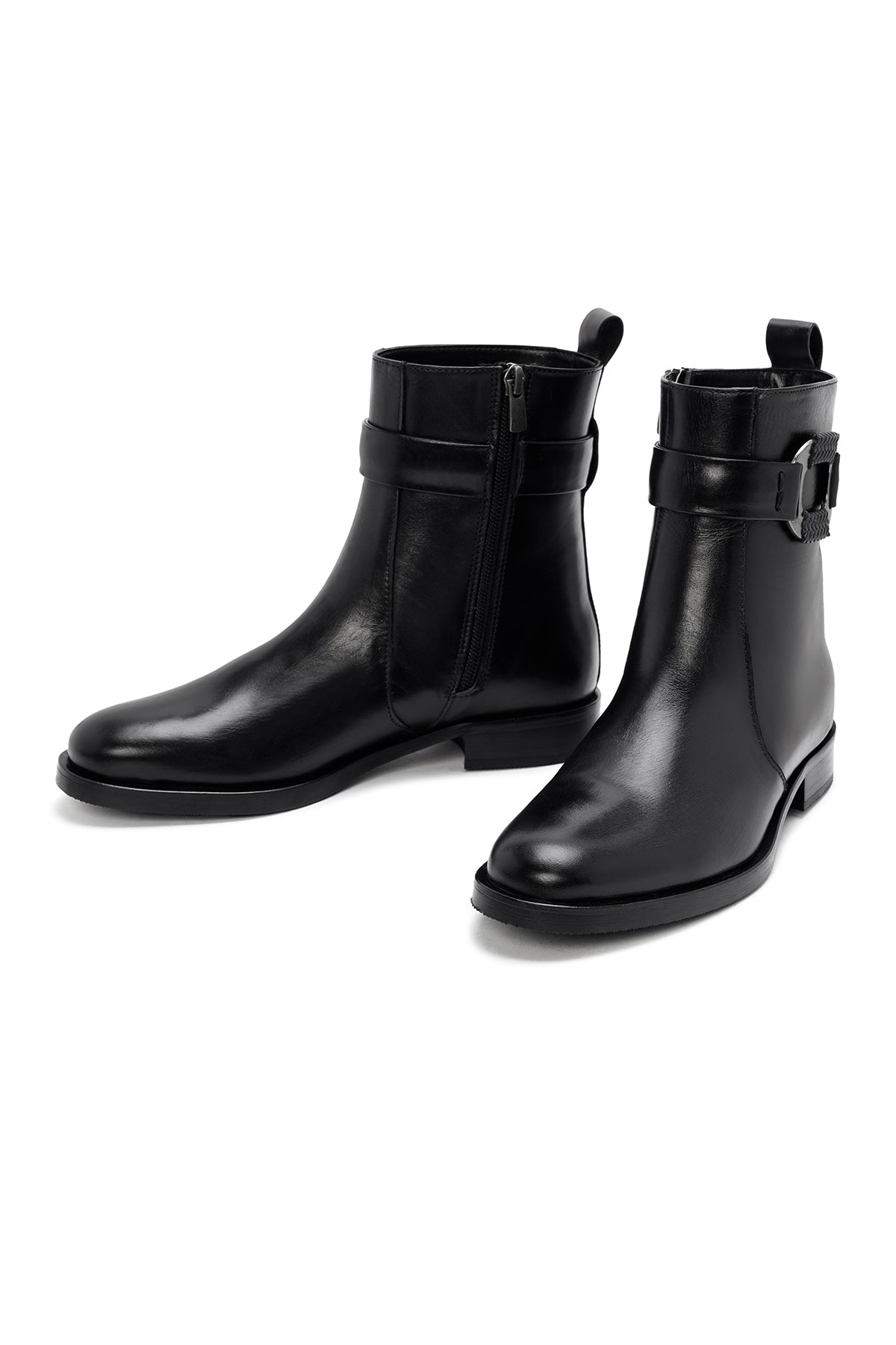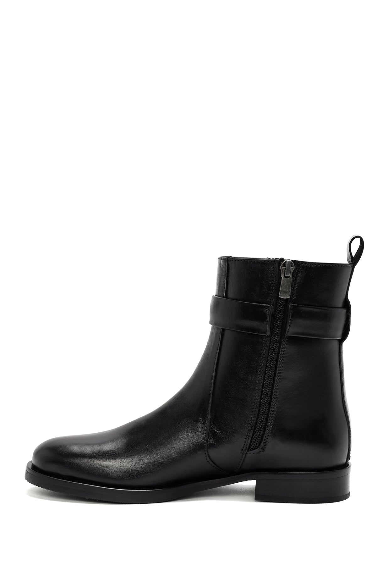 Kadın Siyah Fermuarlı Deri Bot