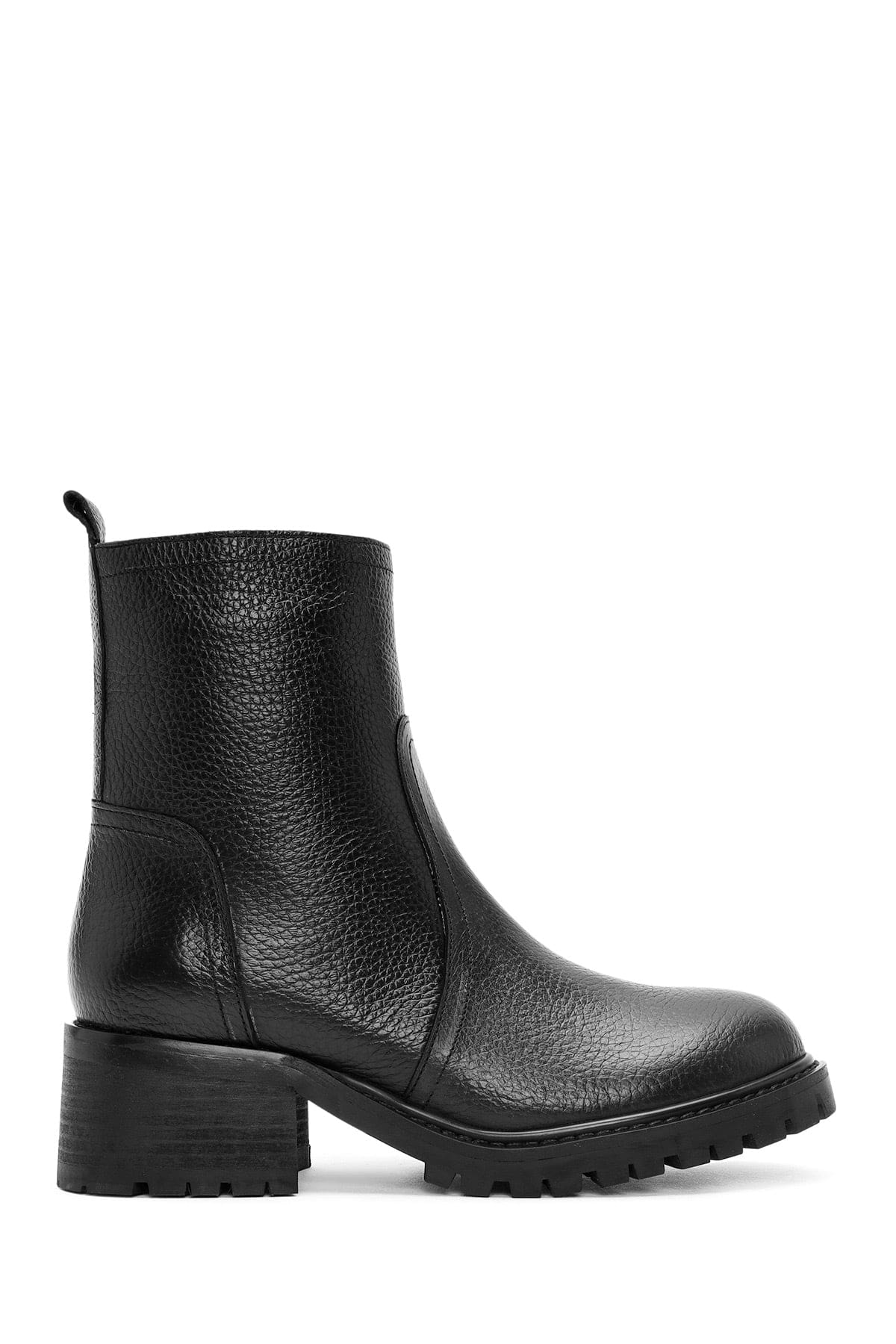 Kadın Siyah Fermuarlı Deri Bot