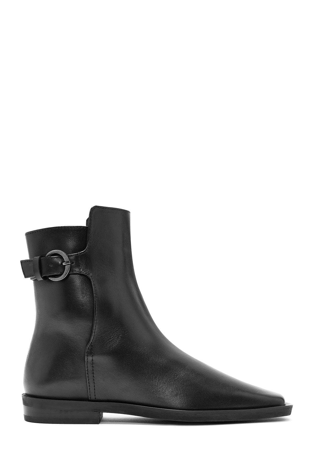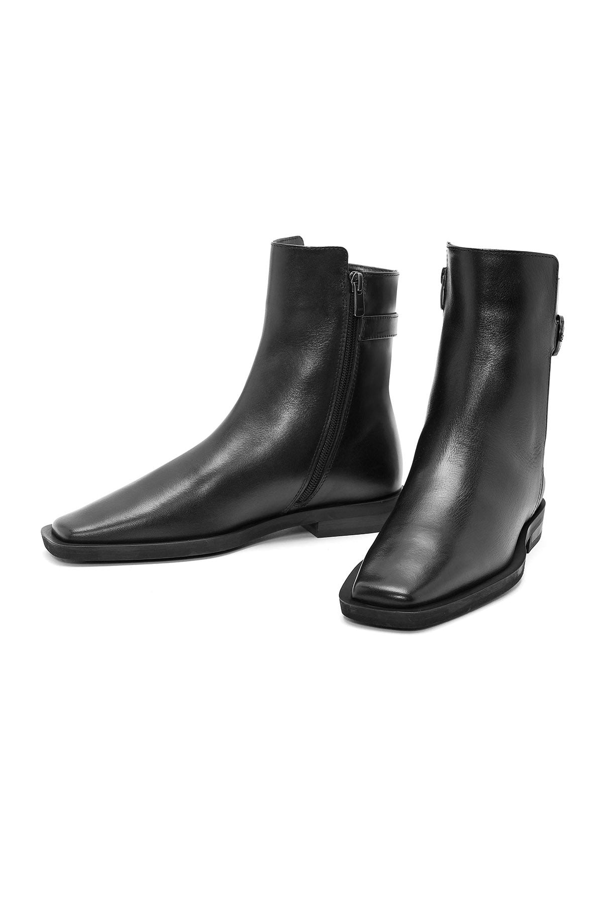 Kadın Siyah Fermuarlı Deri Bot