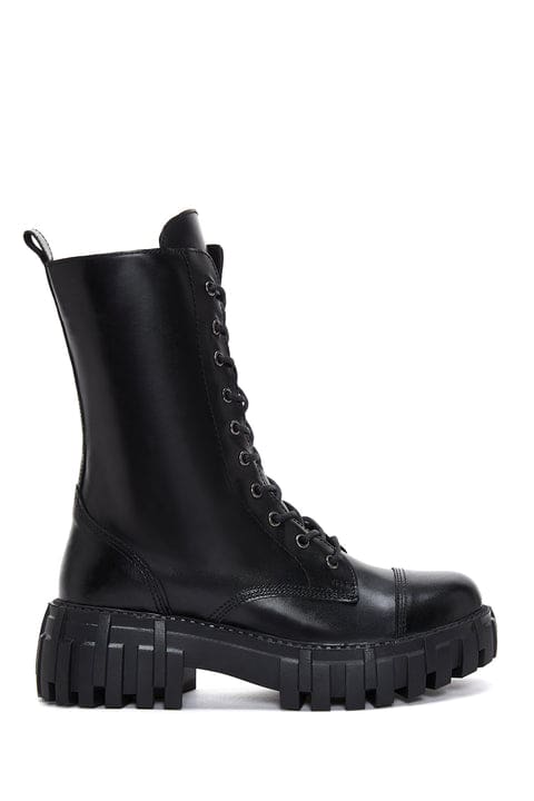 بوت چرم مشکی زنانه بوت تخت دری مد