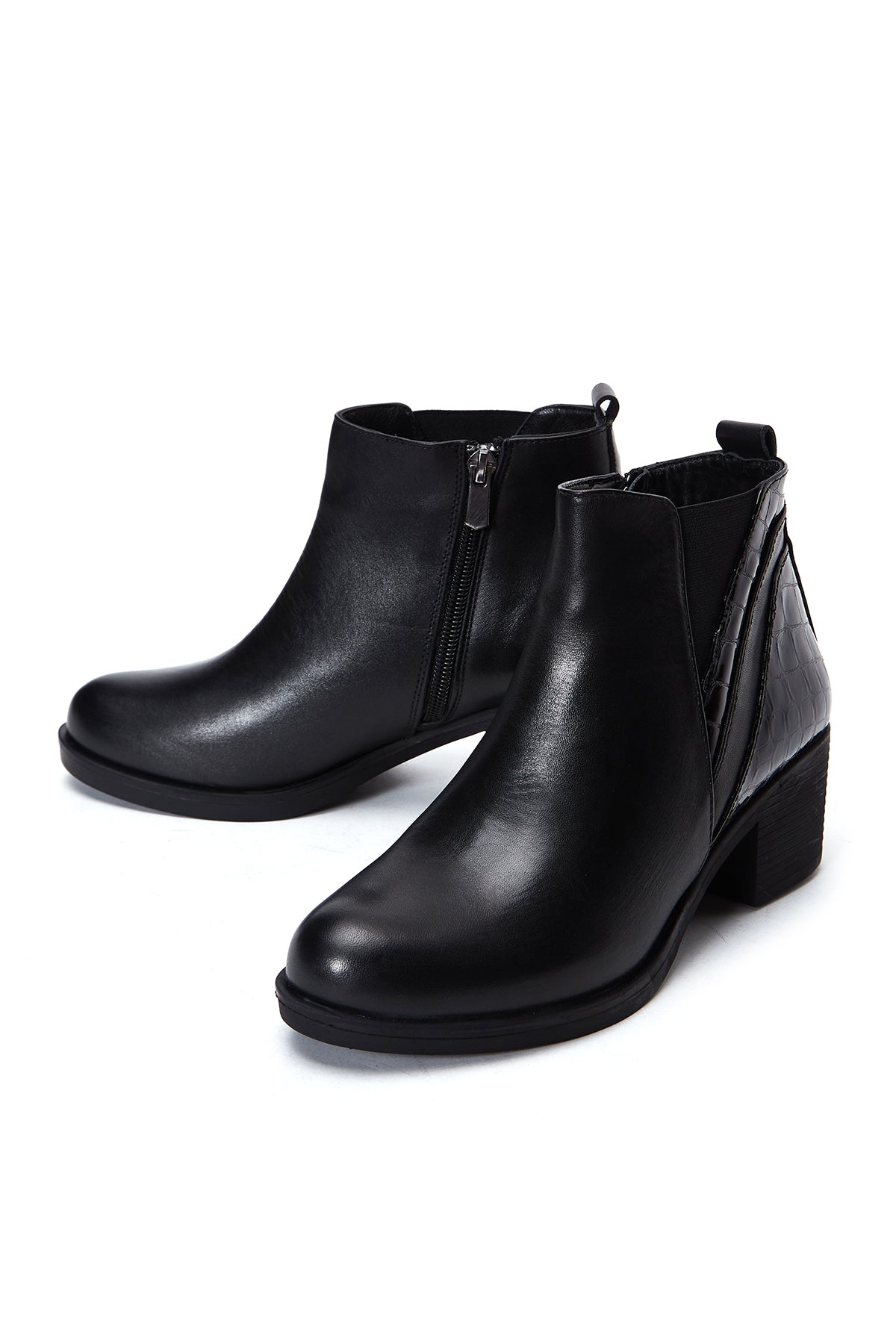 بوت زنانه چرمی مشکی پاشنه ضخیم زیپ دار دری مد