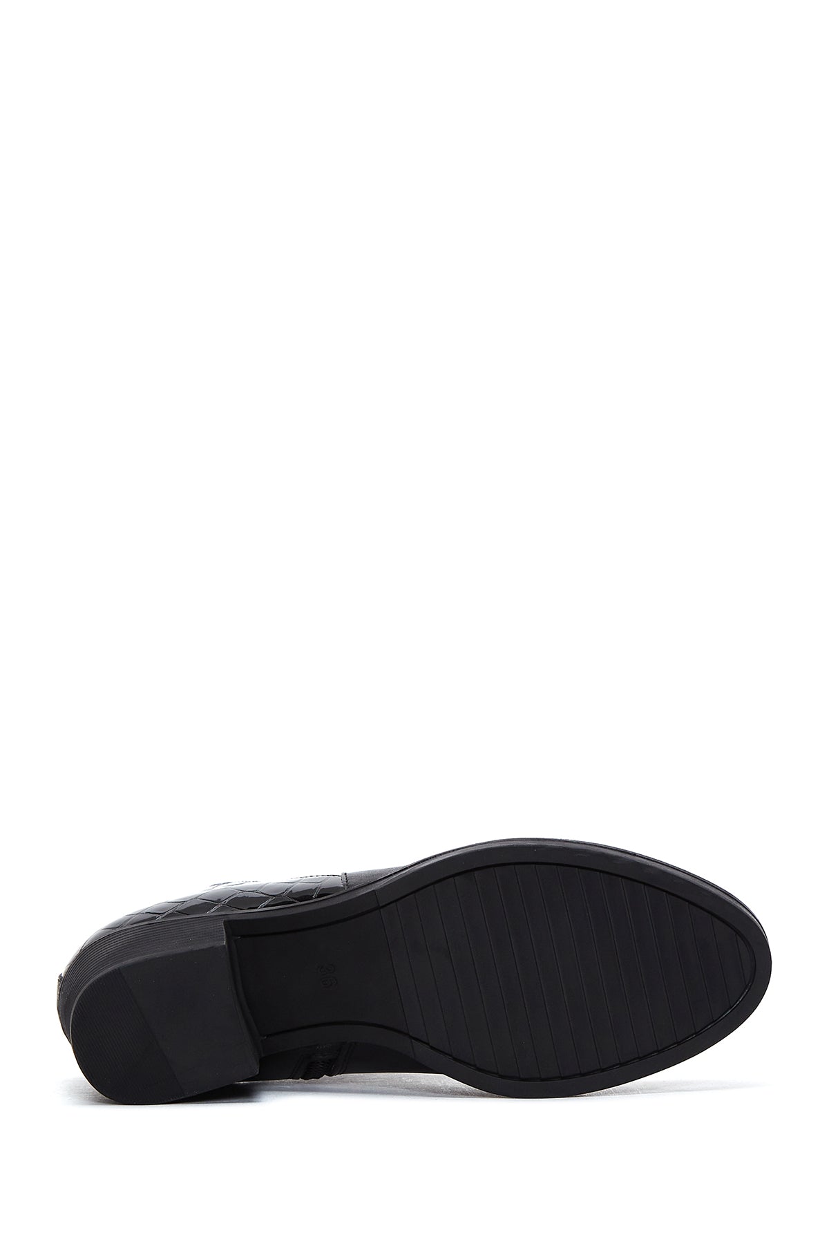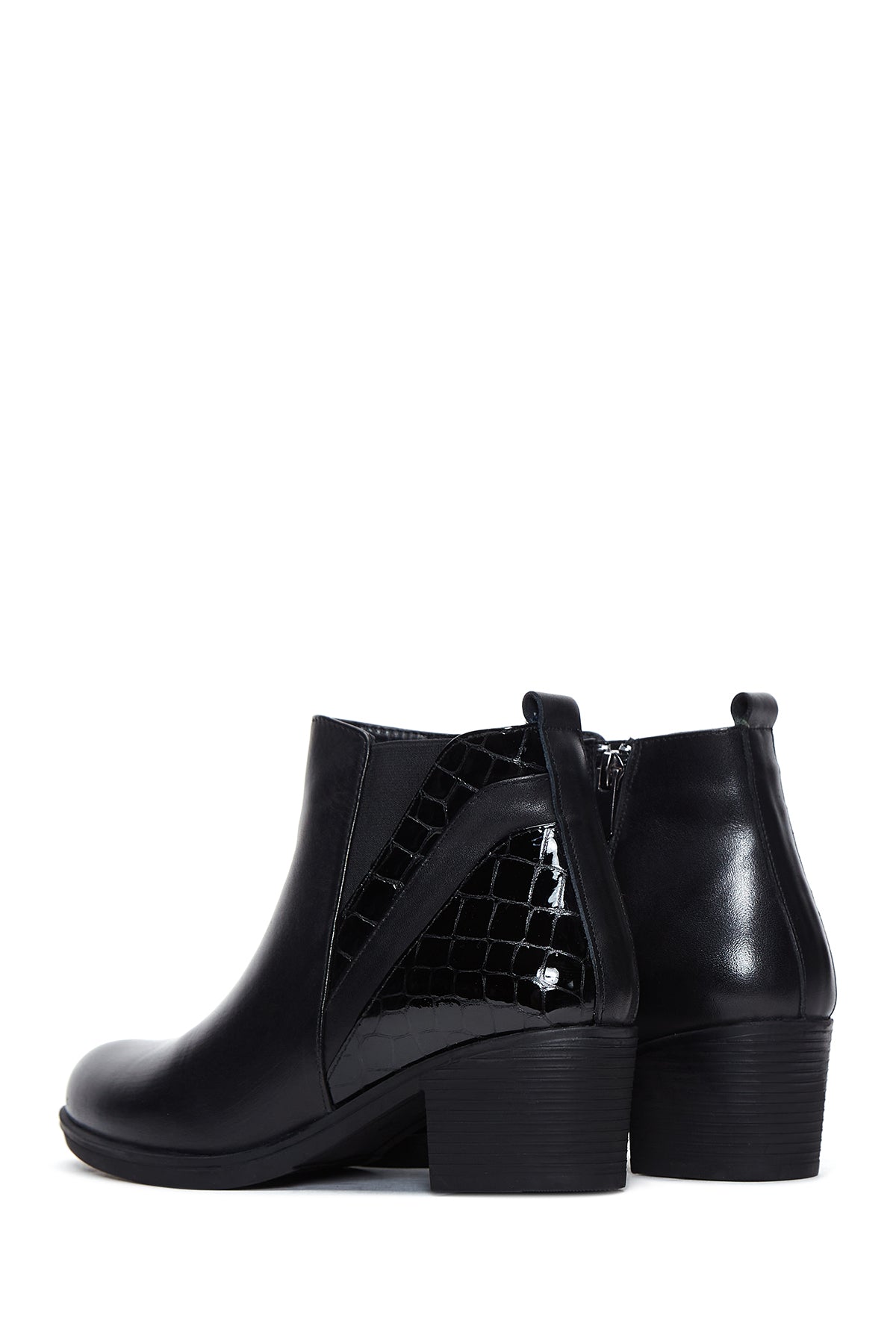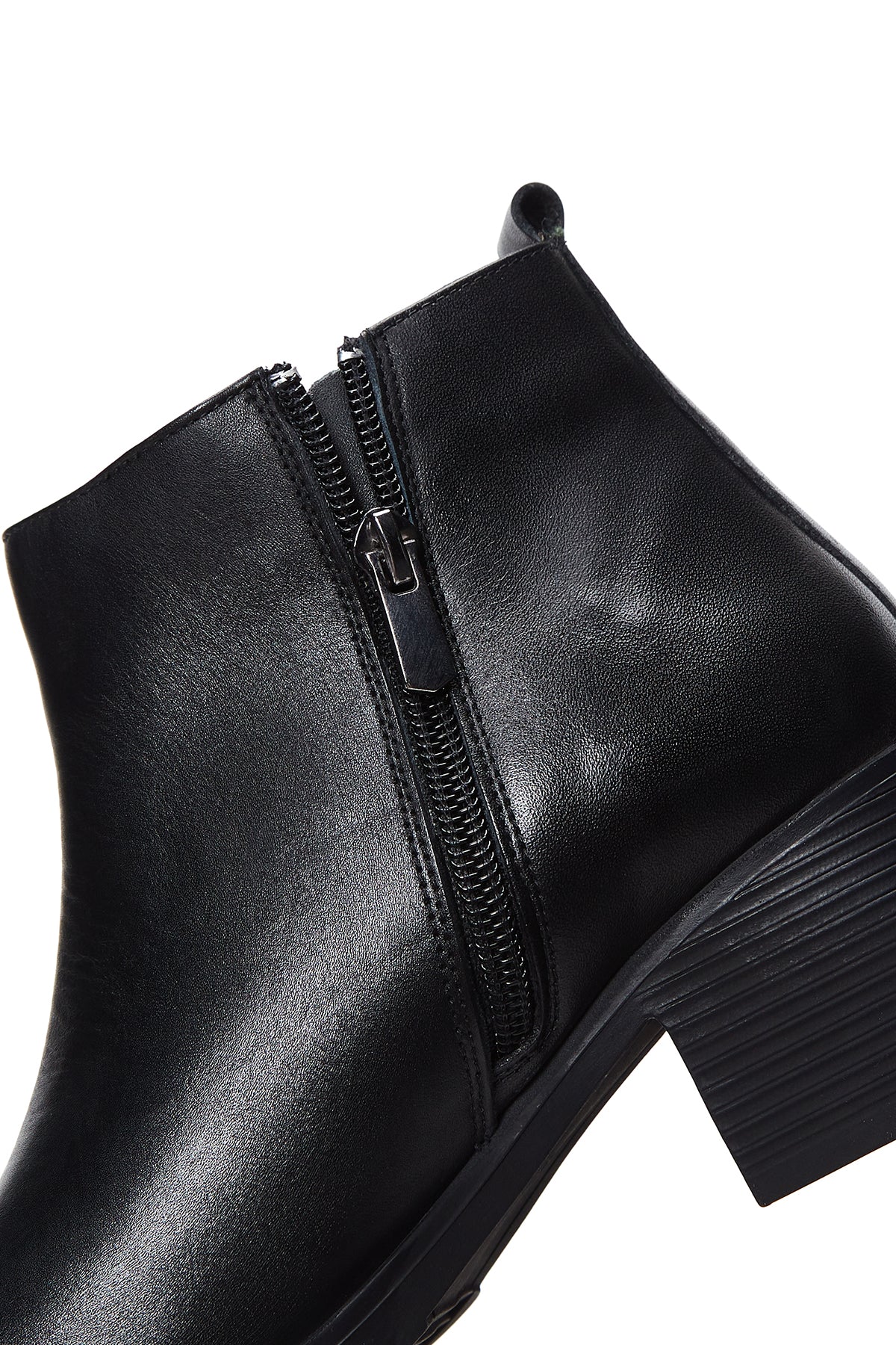 Kadın Siyah Fermuarlı Kalın Topuklu Deri Casual Bot