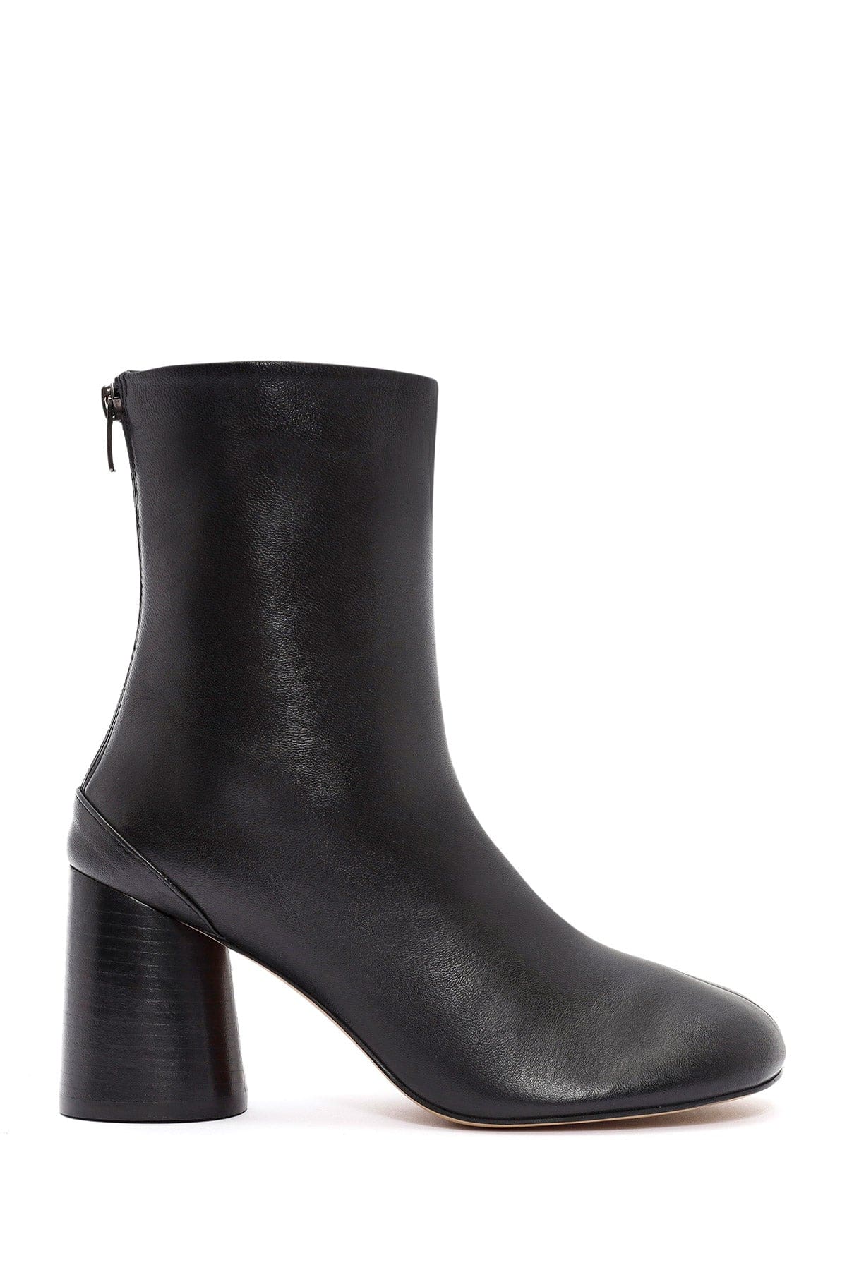 Kadın Siyah Fermuarlı Kalın Topuklu Deri Bot