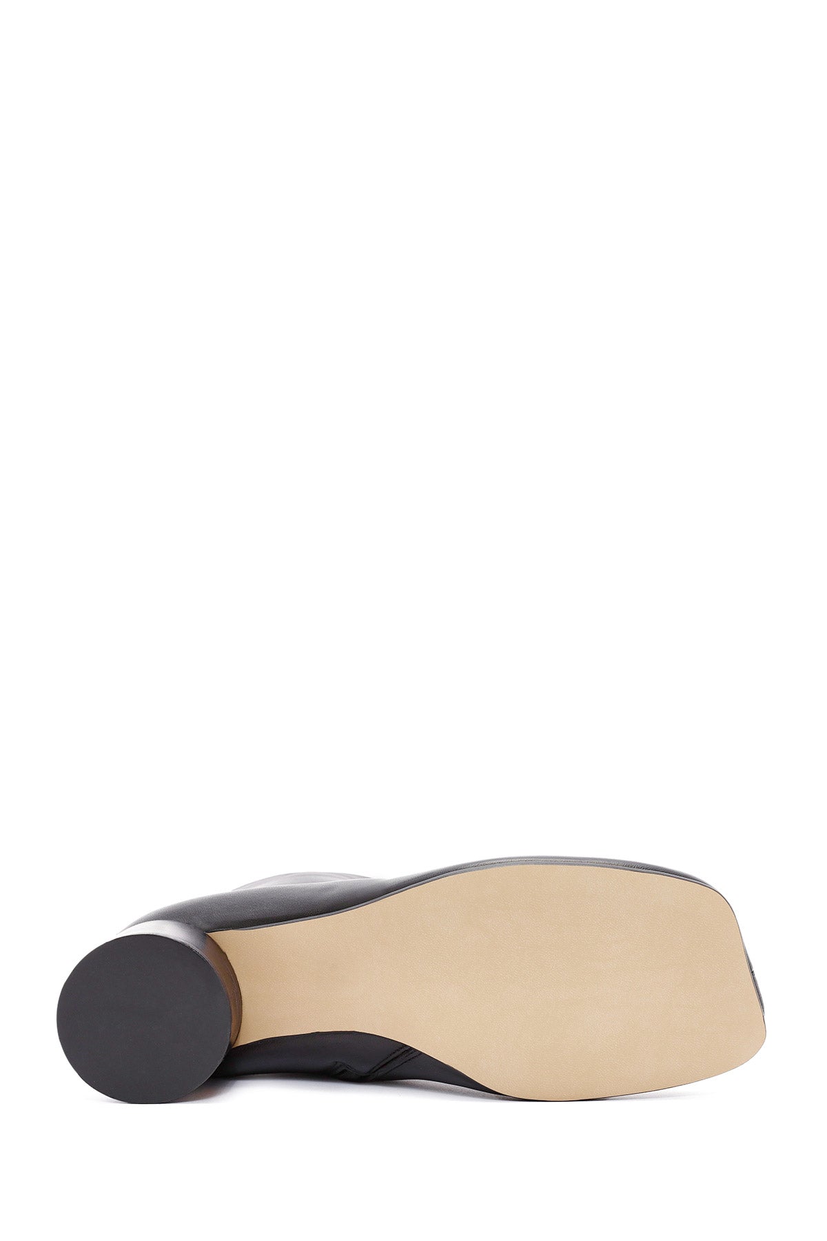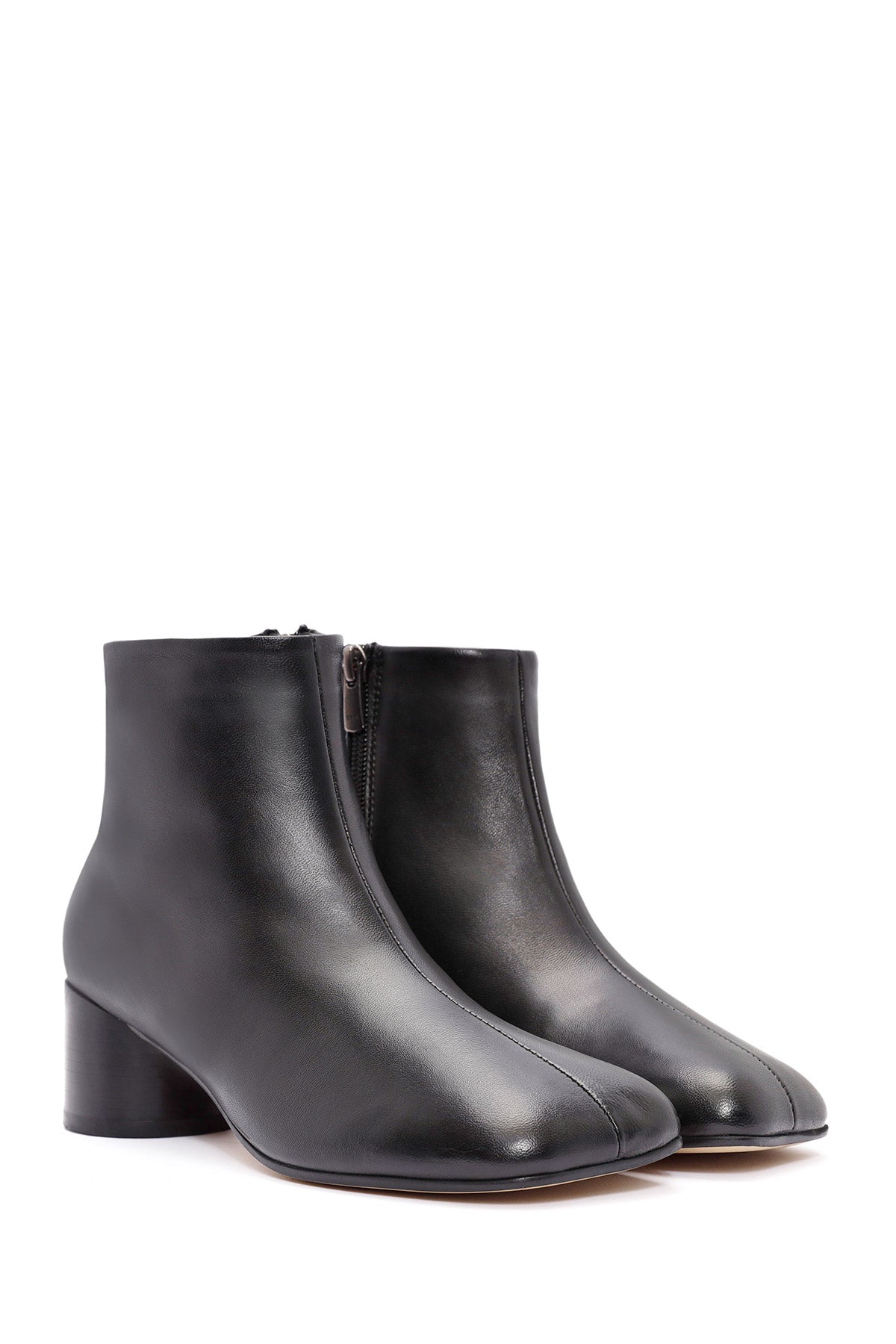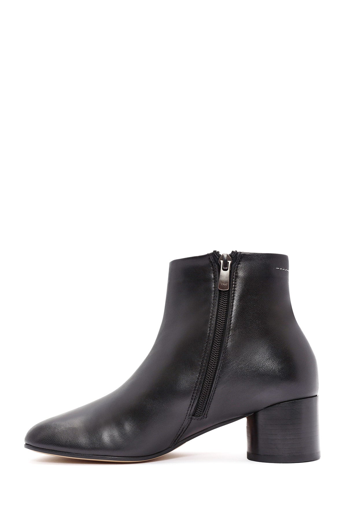 Kadın Siyah Fermuarlı Kalın Topuklu Deri Bot