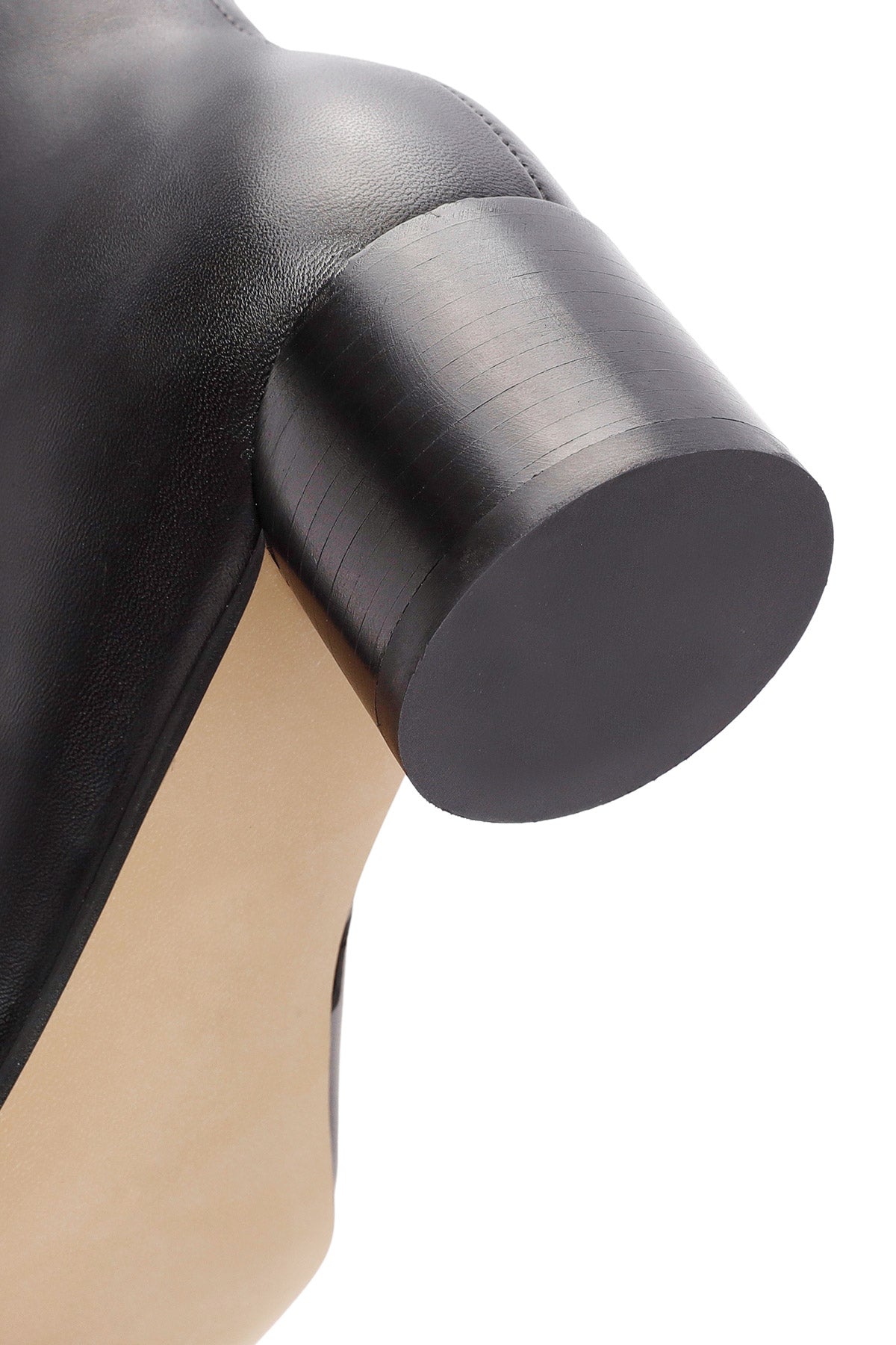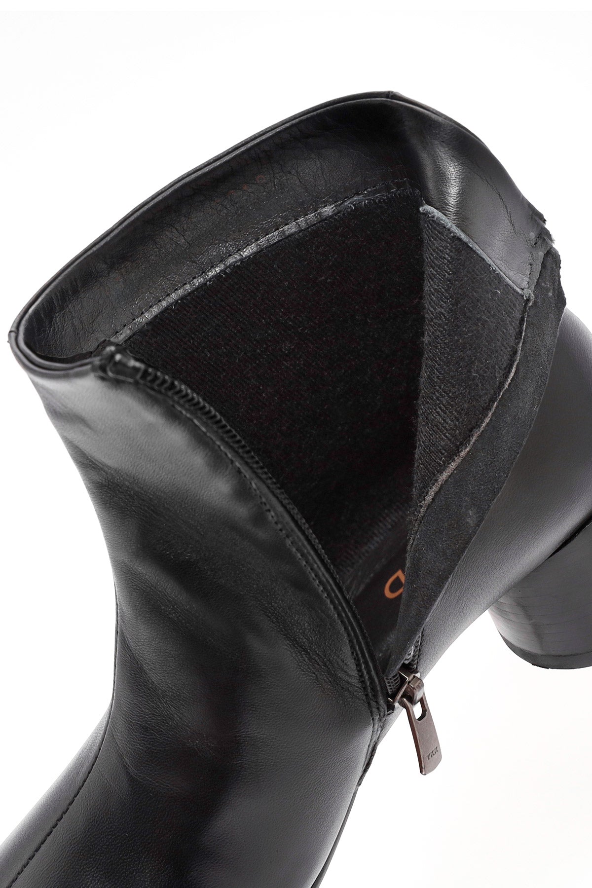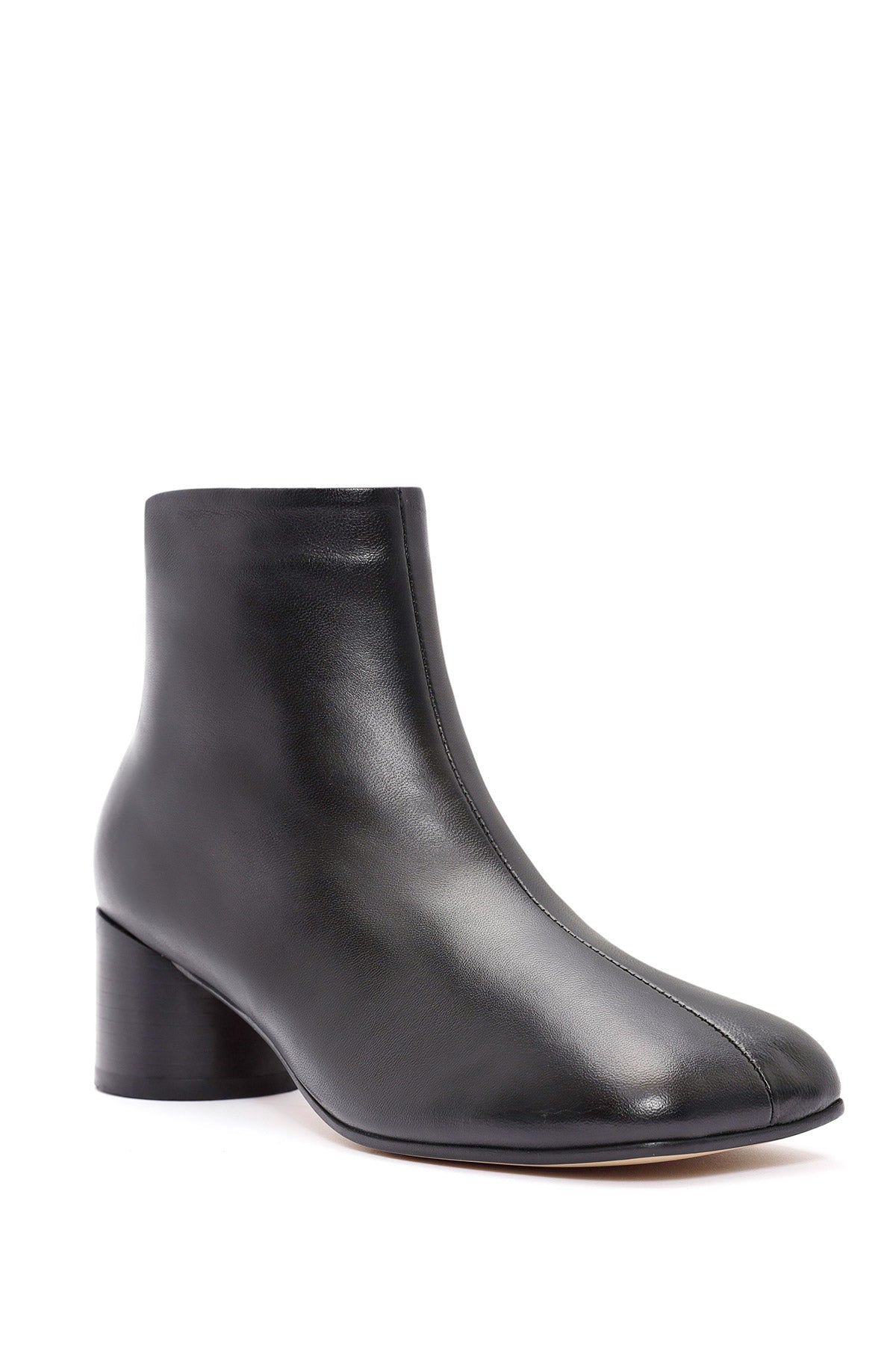 Kadın Siyah Fermuarlı Kalın Topuklu Deri Bot