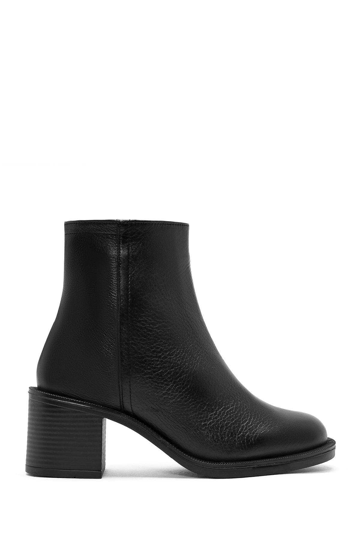 Kadın Siyah Fermuarlı Kalın Topuklu Deri Bot