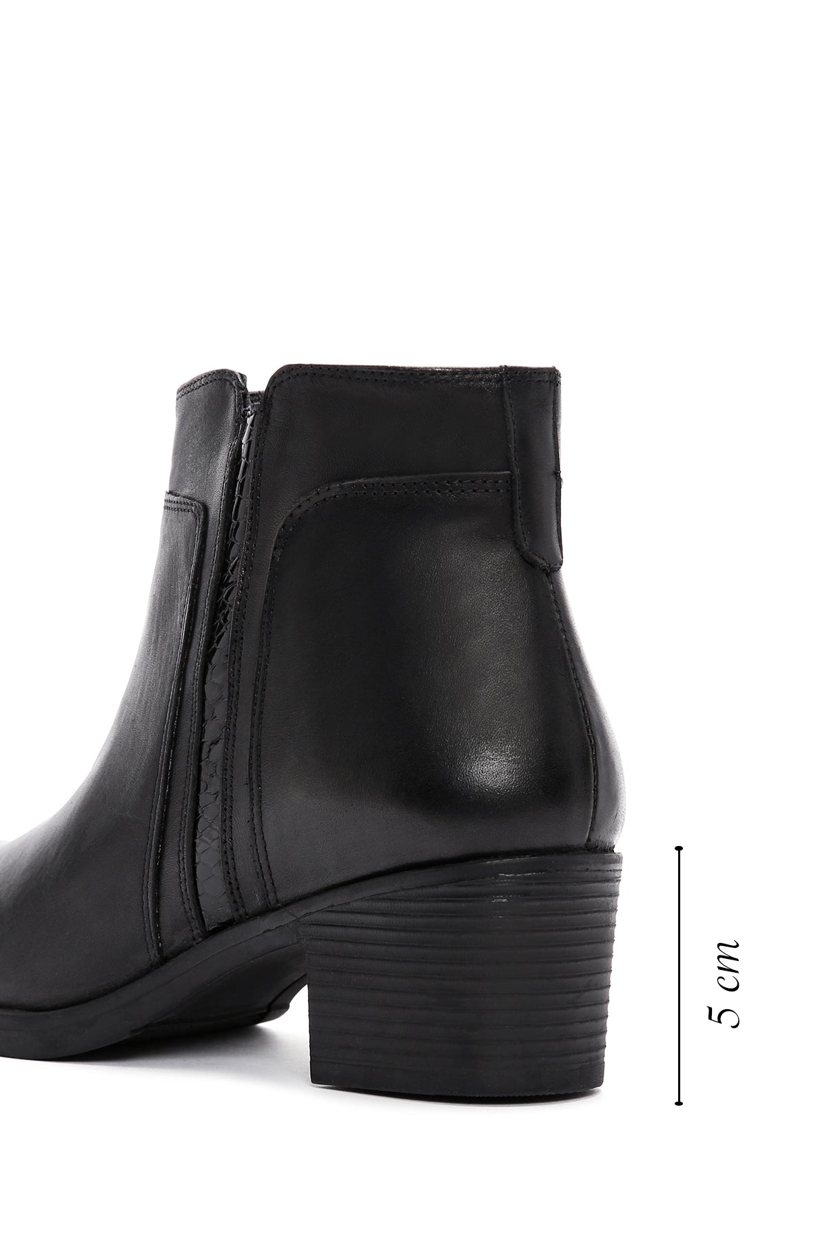 Kadın Siyah Fermuarlı Kalın Topuklu Deri Casual Bot