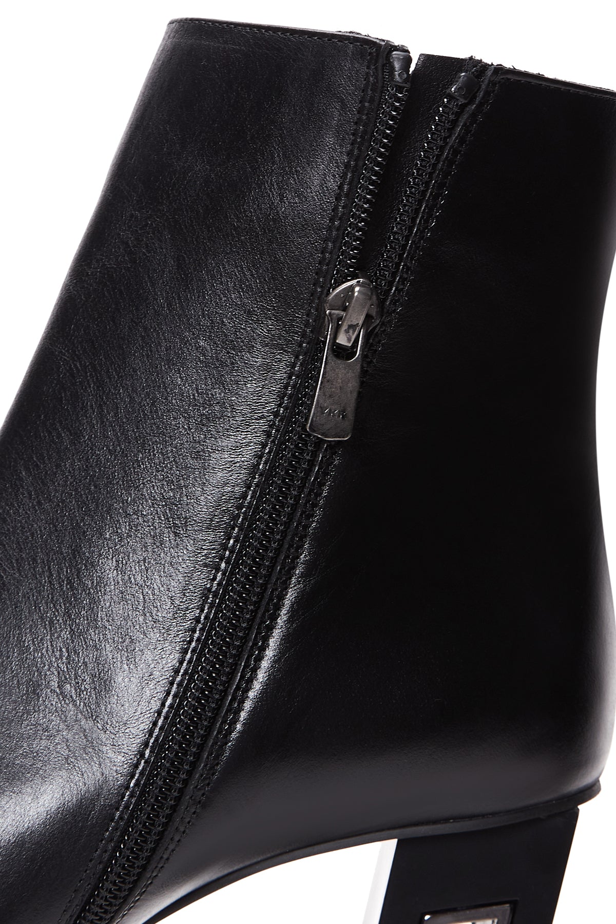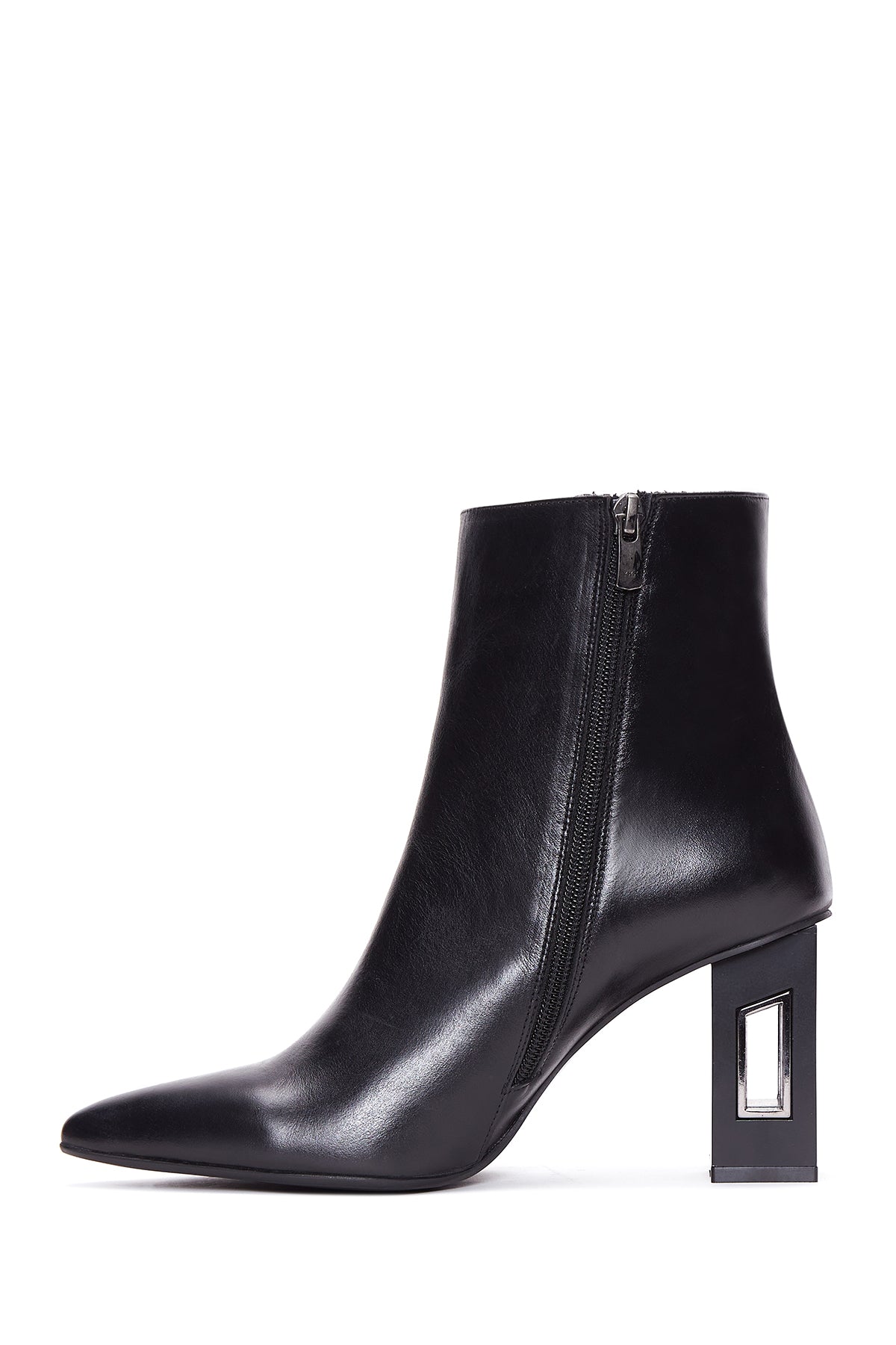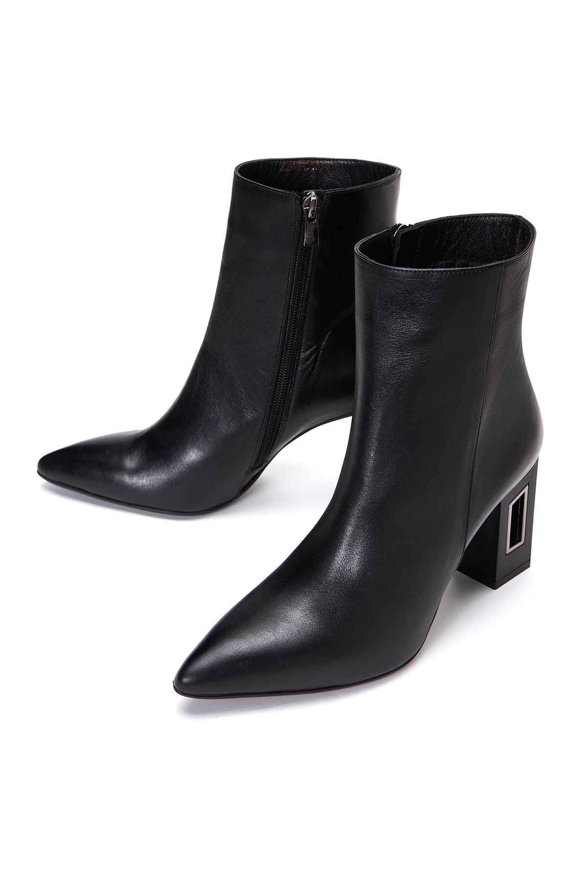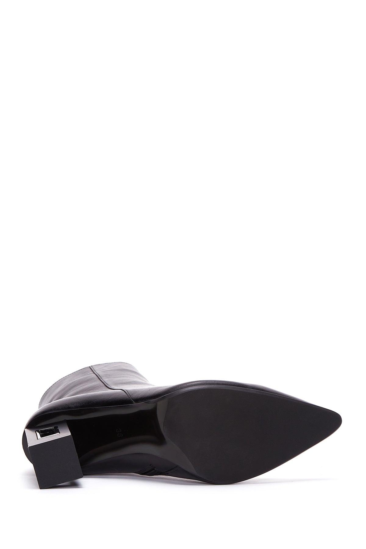 Kadın Siyah Fermuarlı Kalın Topuklu Deri Bot