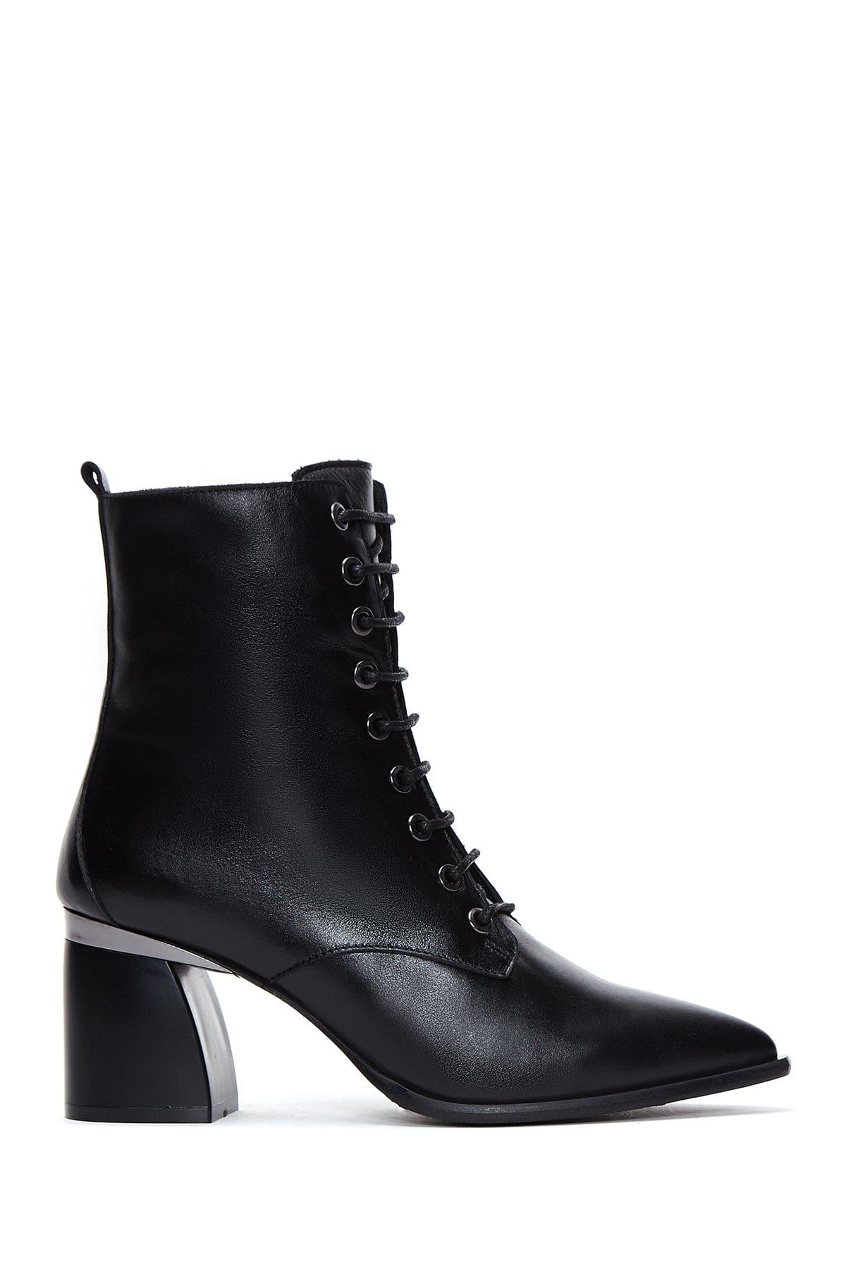 Kadın Siyah Fermuarlı Kalın Topuklu Deri Bot