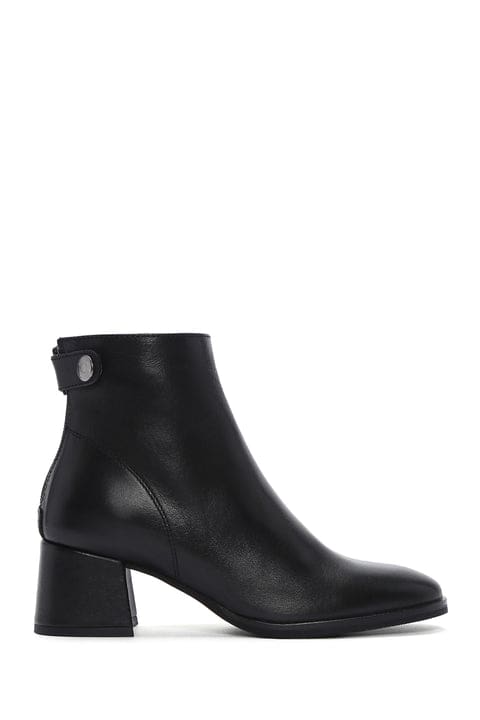 Kadın Siyah Kalın Topuklu Fermuarlı Deri Bot