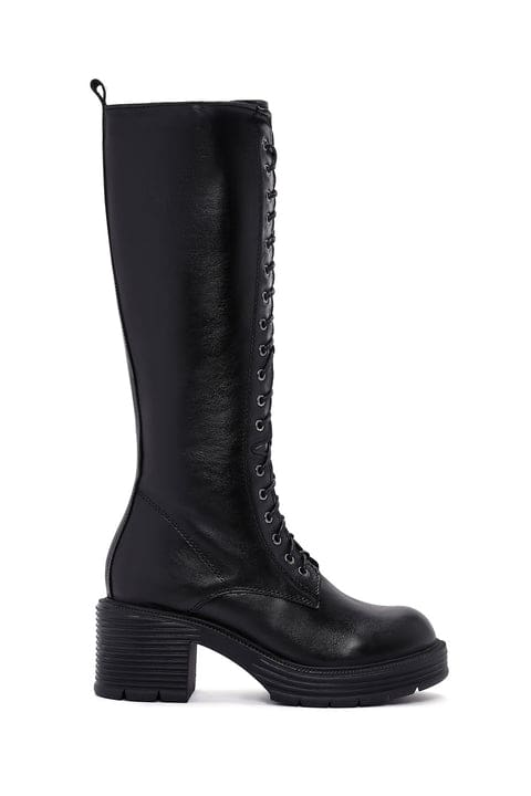 Kadın Siyah Fermuarlı Topuklu Deri Çizme