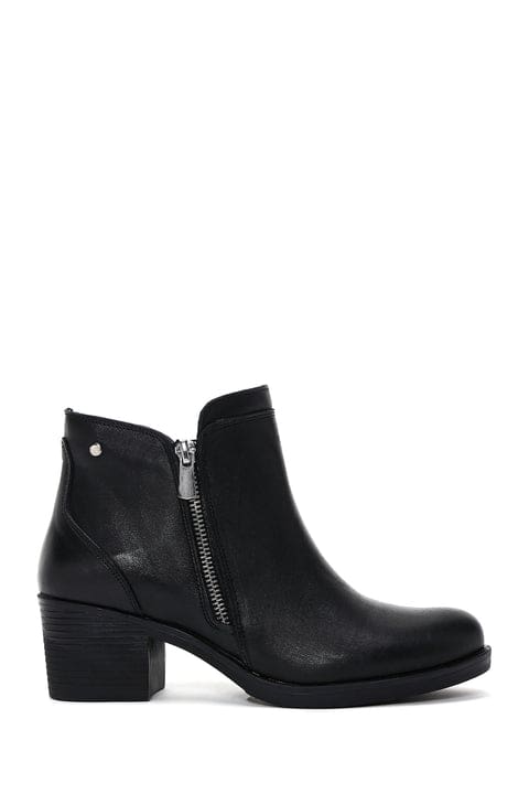 Kadın Siyah Fermuarlı Topuklu Deri Bot