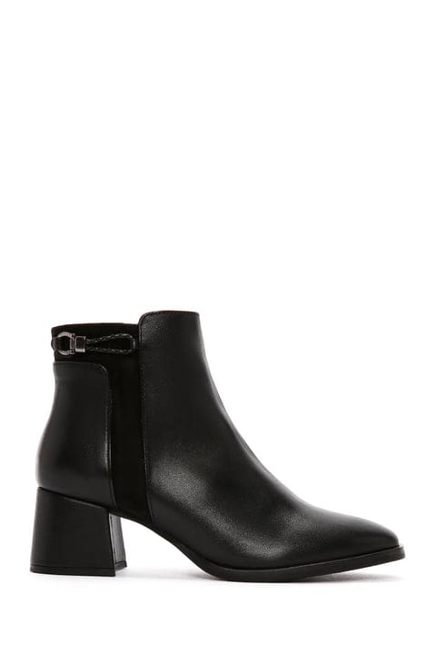 Kadın Siyah Fermuarlı Topuklu Deri Bot