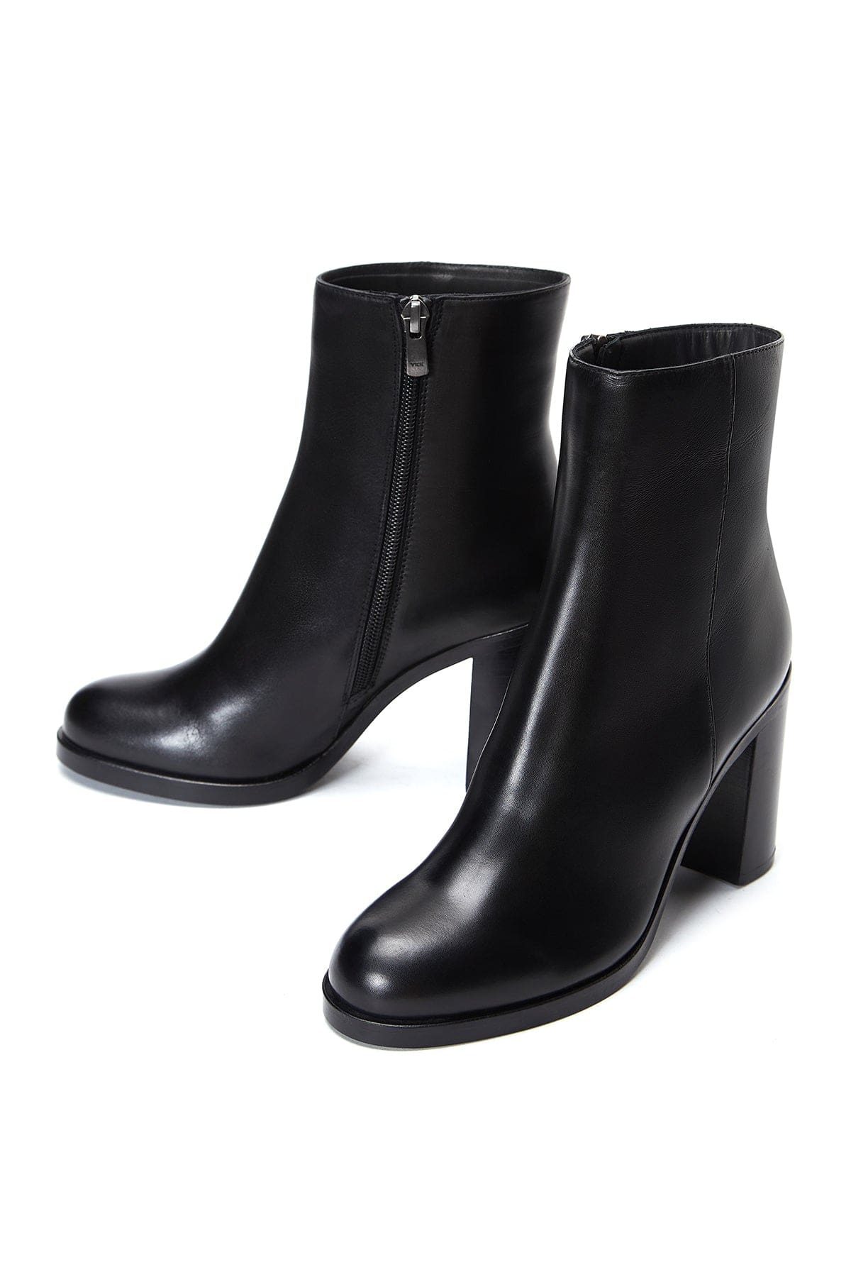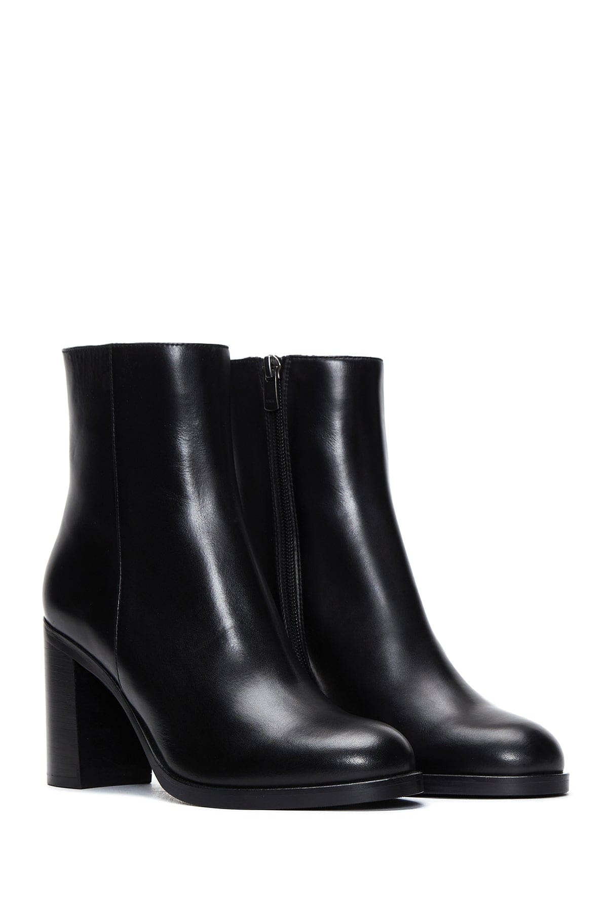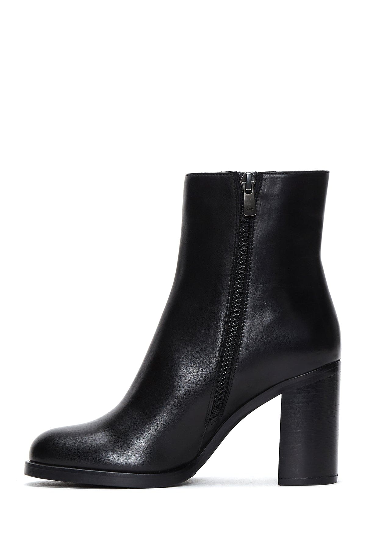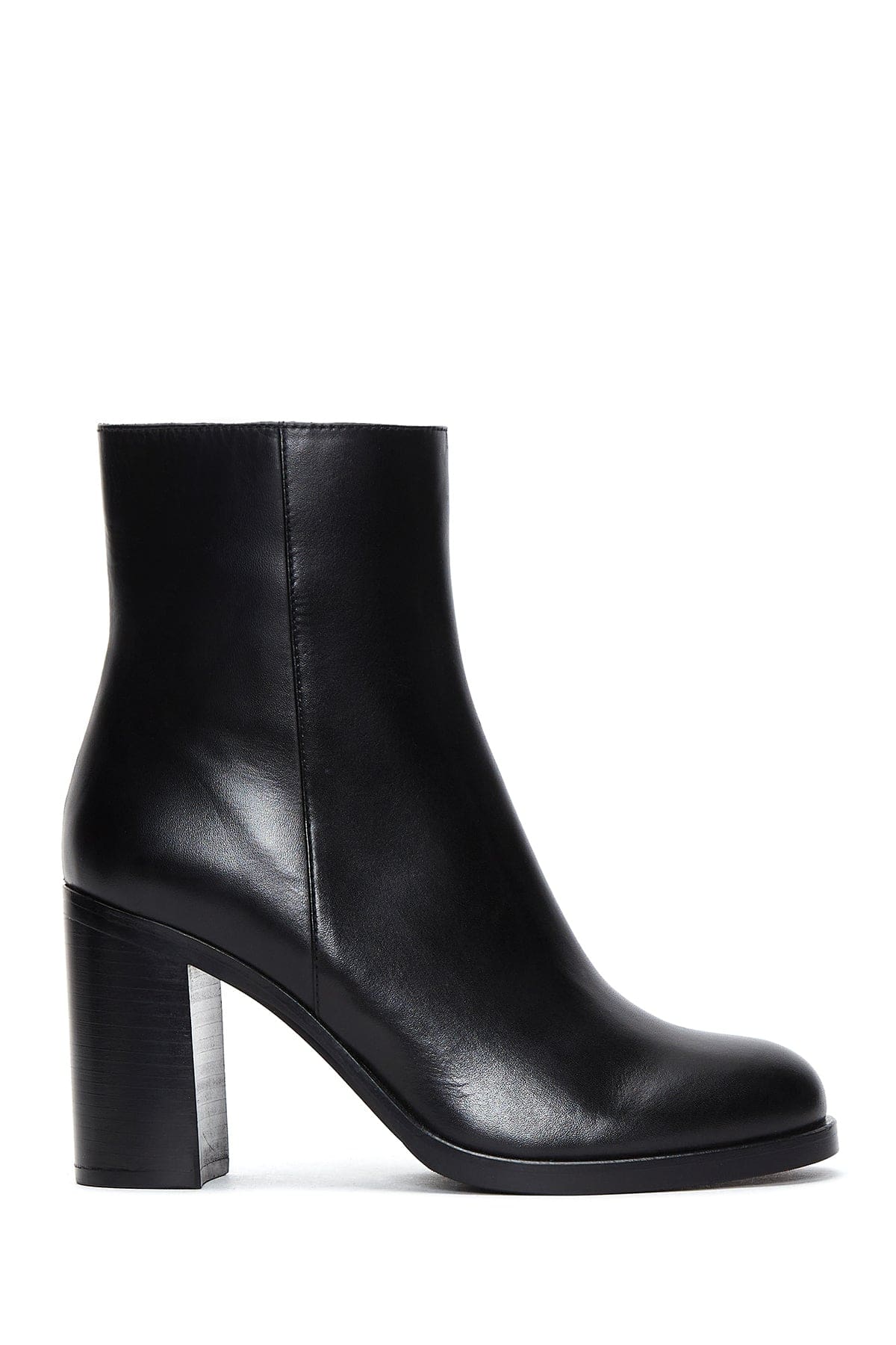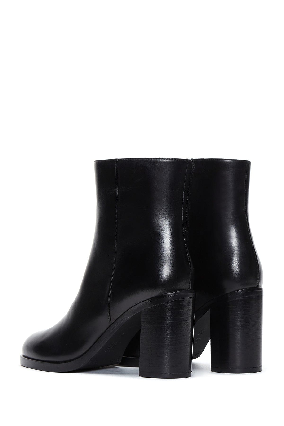 Kadın Siyah Fermuarlı Topuklu Deri Bot