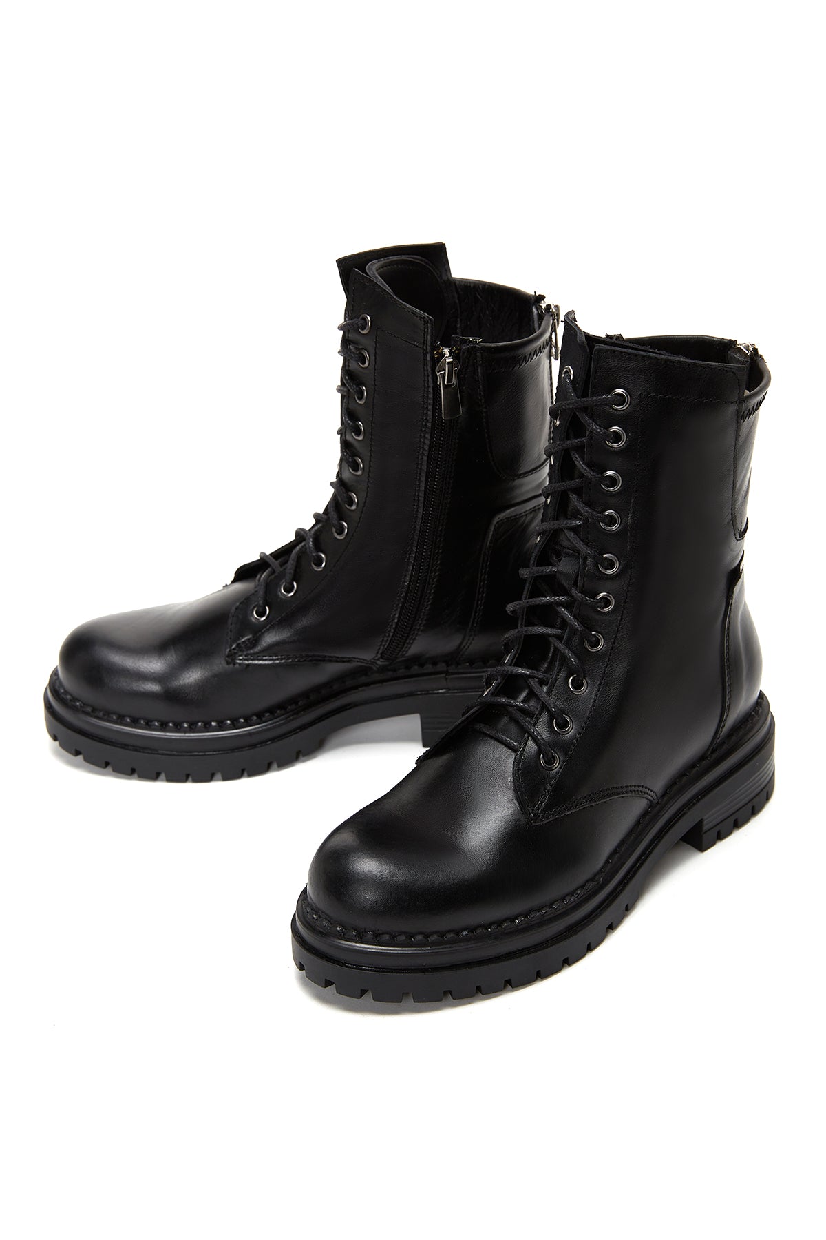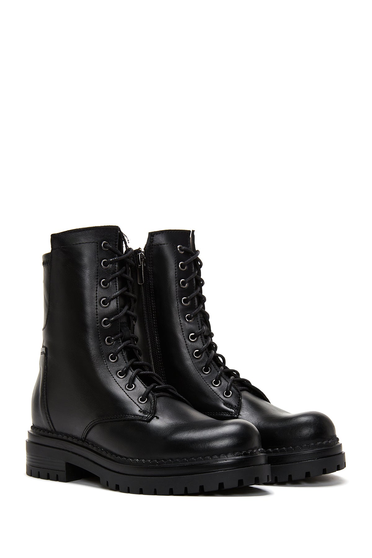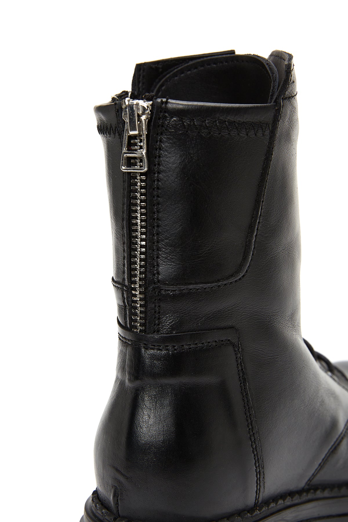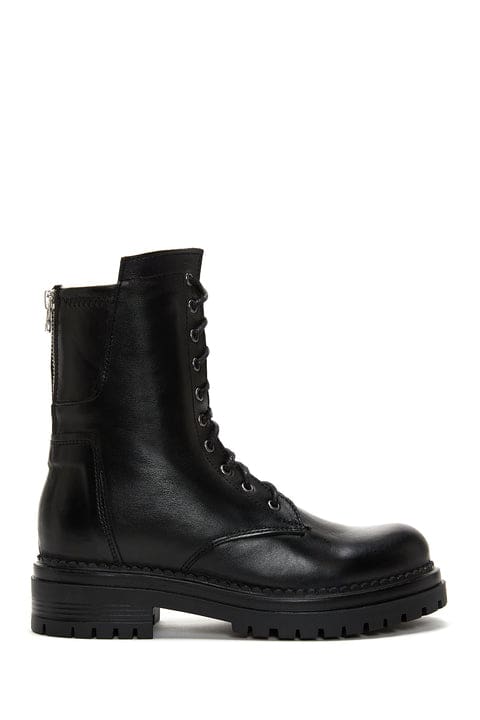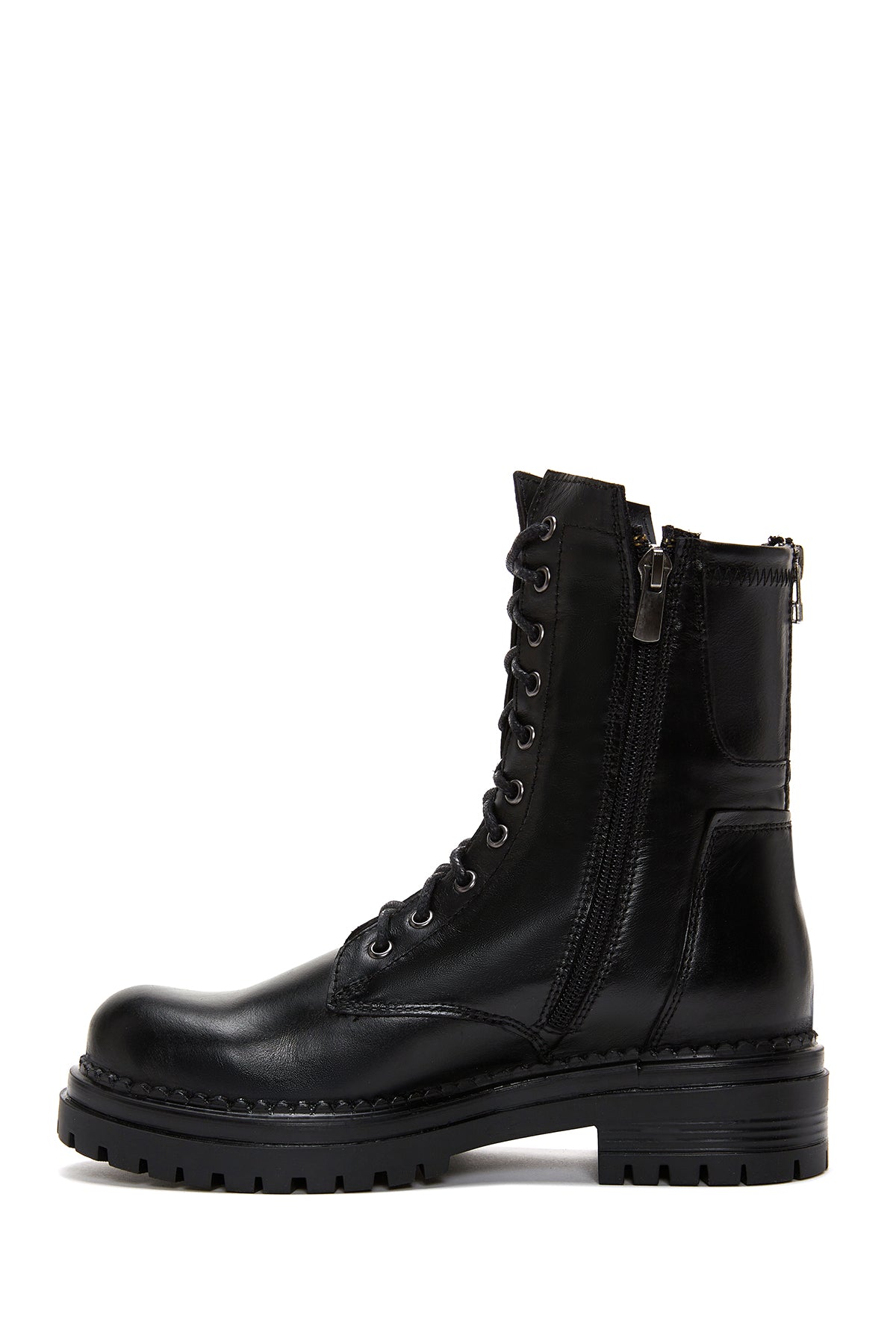 Kadın Siyah Bağcıklı Fermuarlı Deri Postal Bot