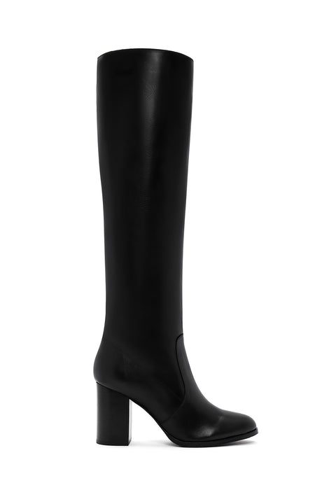 Kadın Siyah Kalın Topuklu Deri Çizme