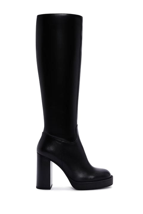 Kadın Siyah Kalın Topuklu Fermuarlı Deri Çizme