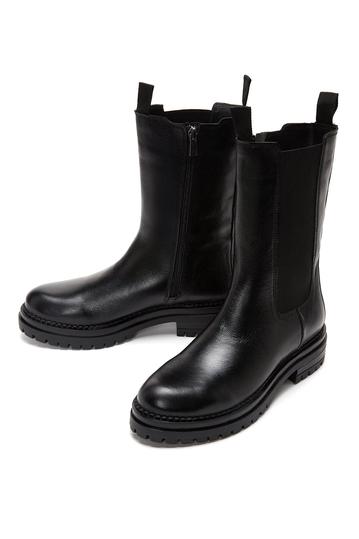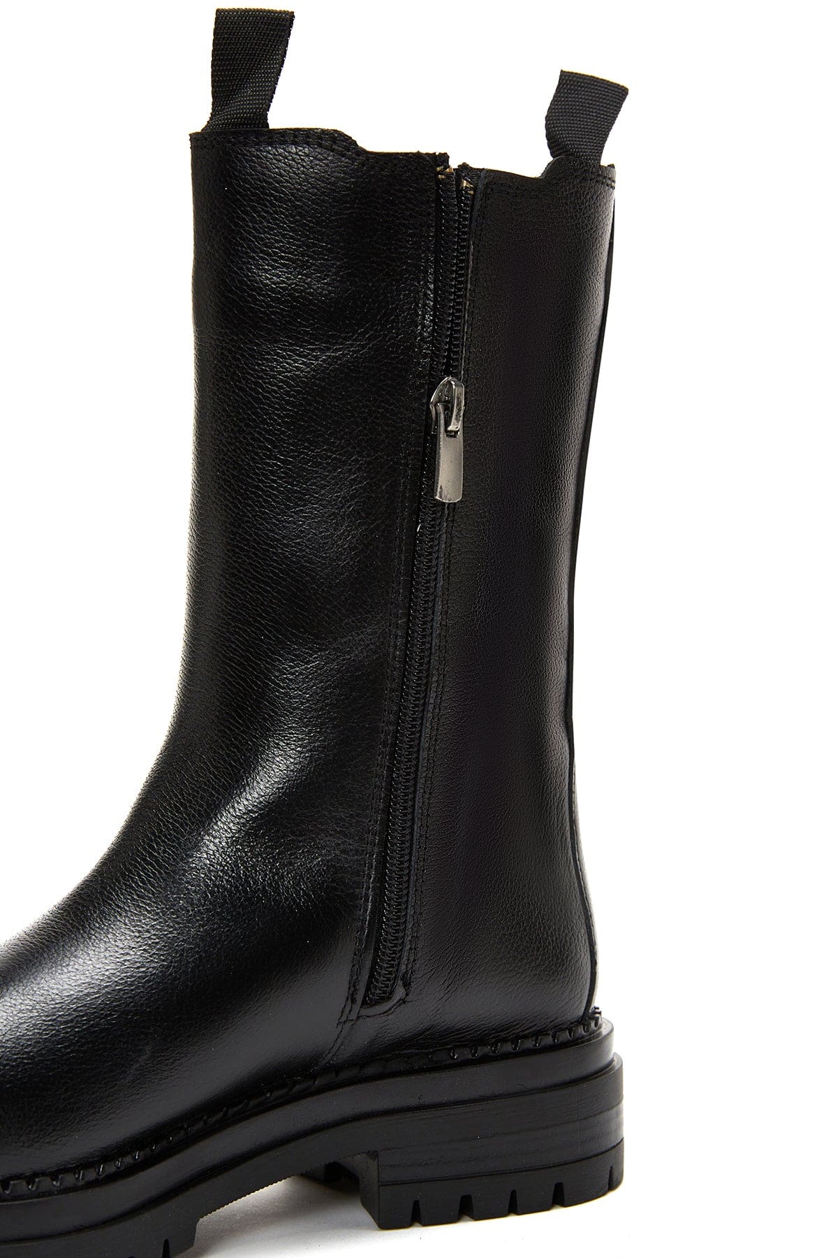 بوت زنانه چرم مشکی زیپ دار دری مد