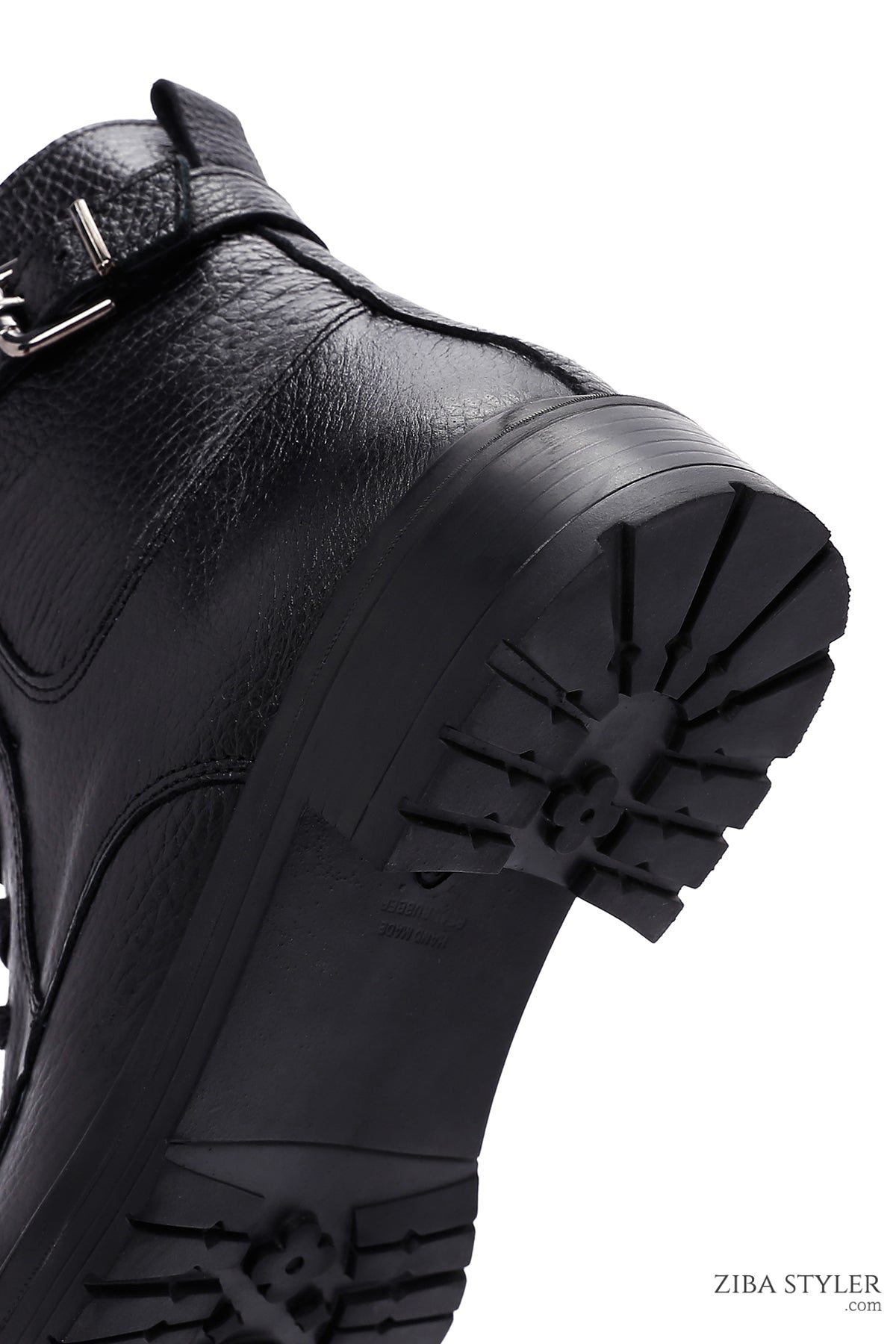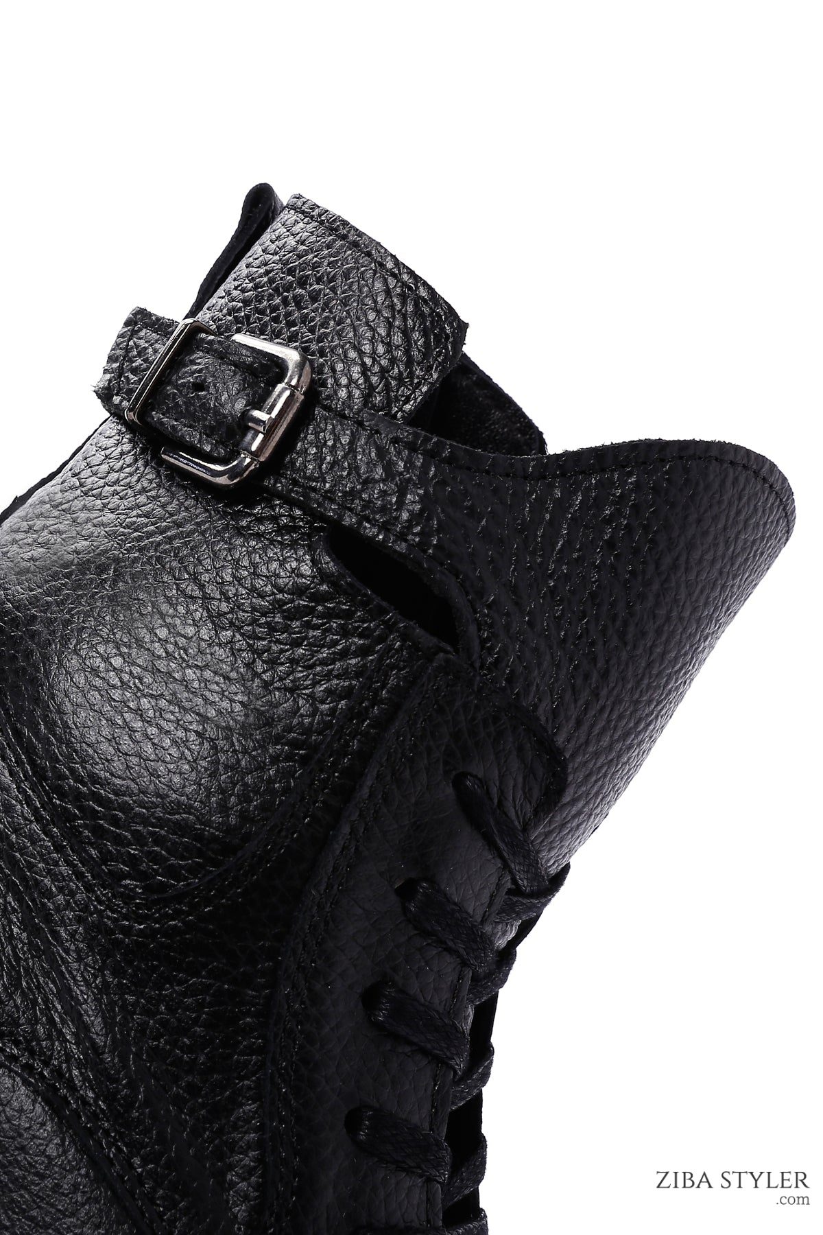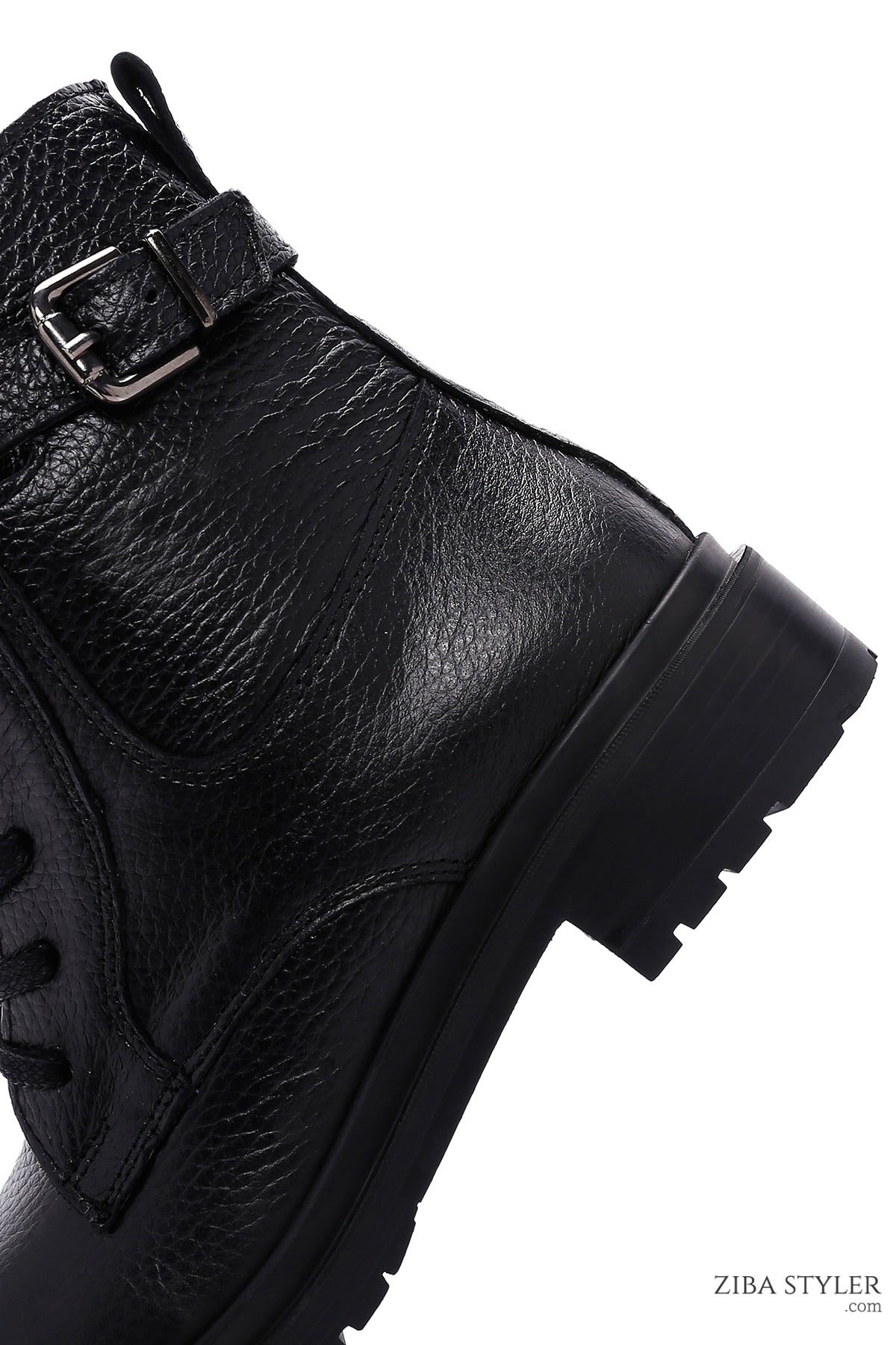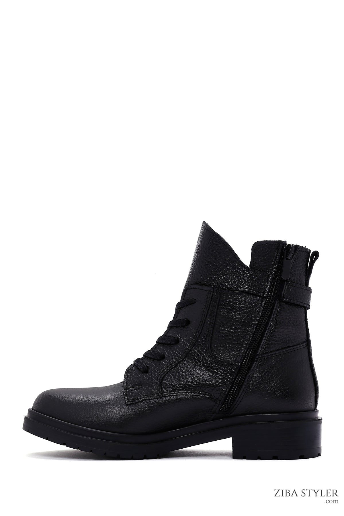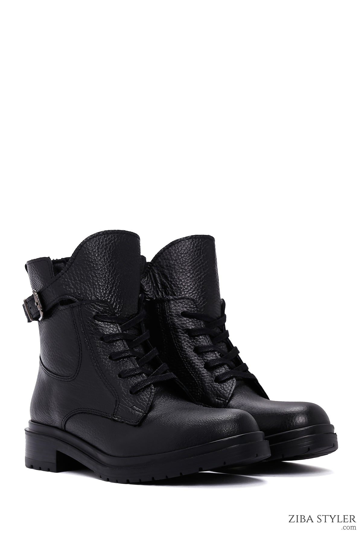 بوت زنانه چرمی مشکی زیپ دار سگک دار دری مد