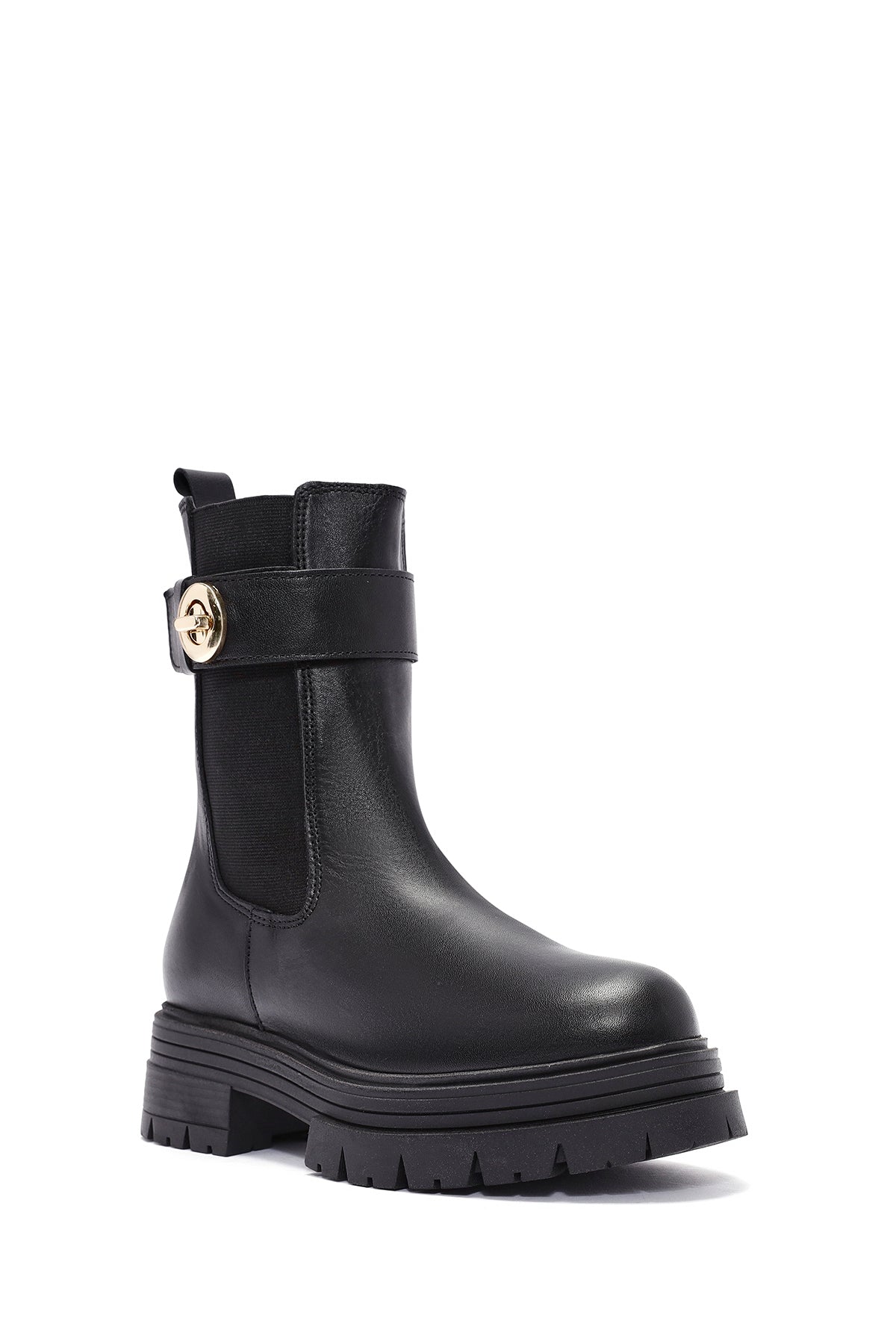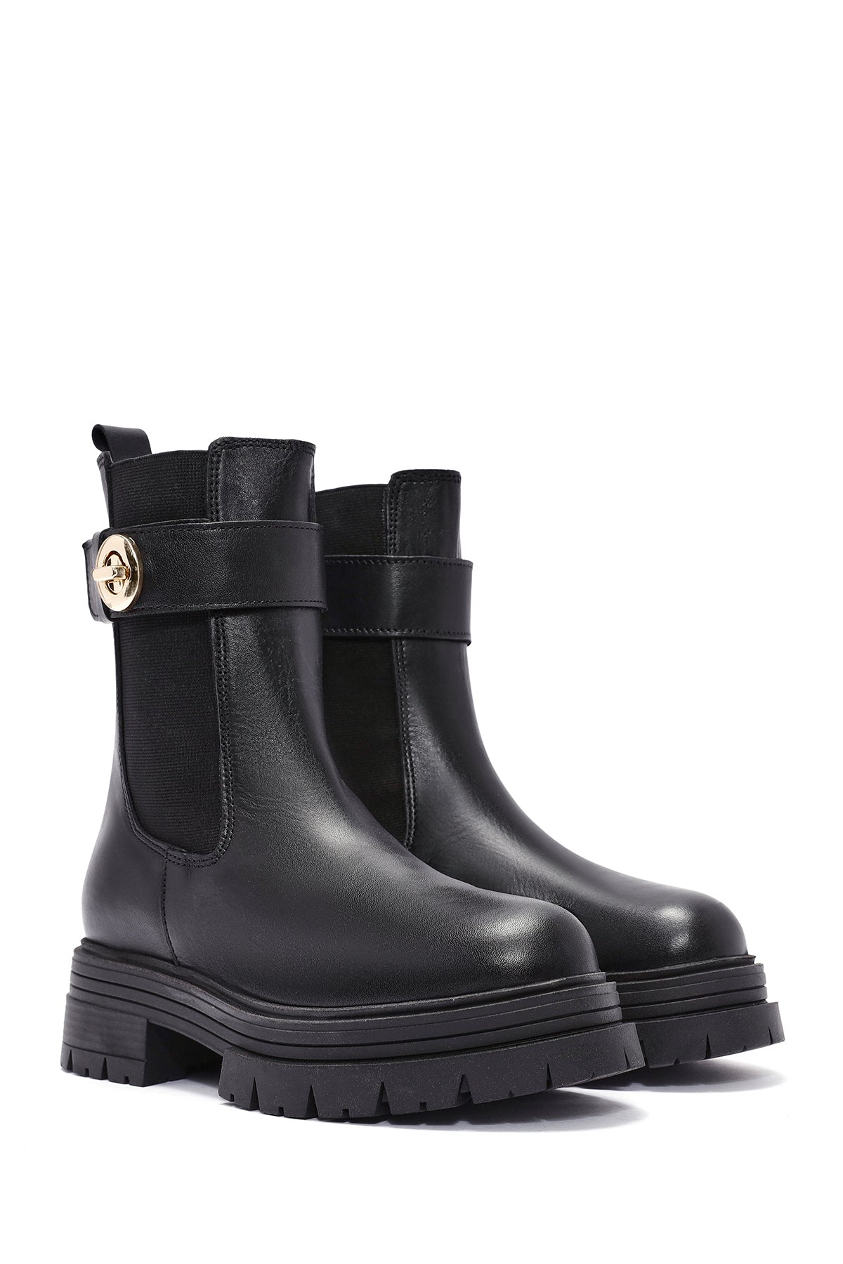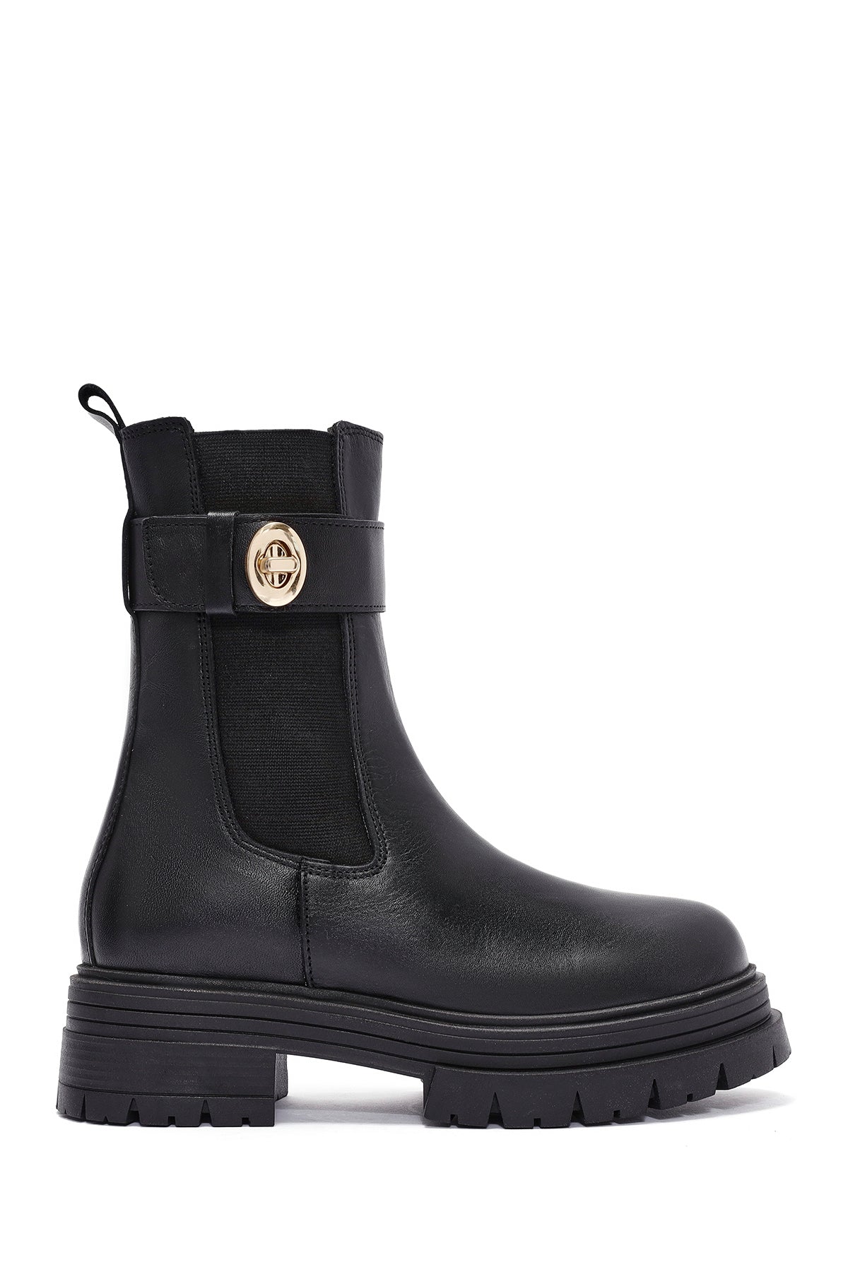 Kadın Siyah Toka Detaylı Deri Chelsea Bot