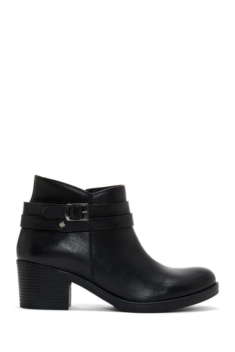 Kadın Siyah Deri Tokalı Topuklu Bot