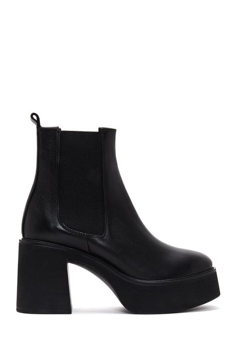 بوت پاشنه دار چرمی مشکی زنانه دری مد