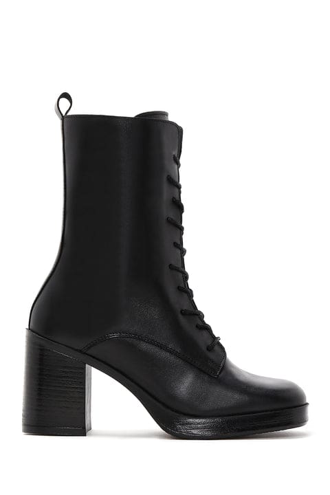بوت پاشنه دار چرمی مشکی زنانه دری مد