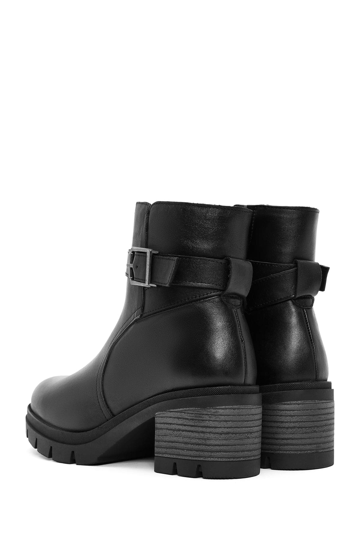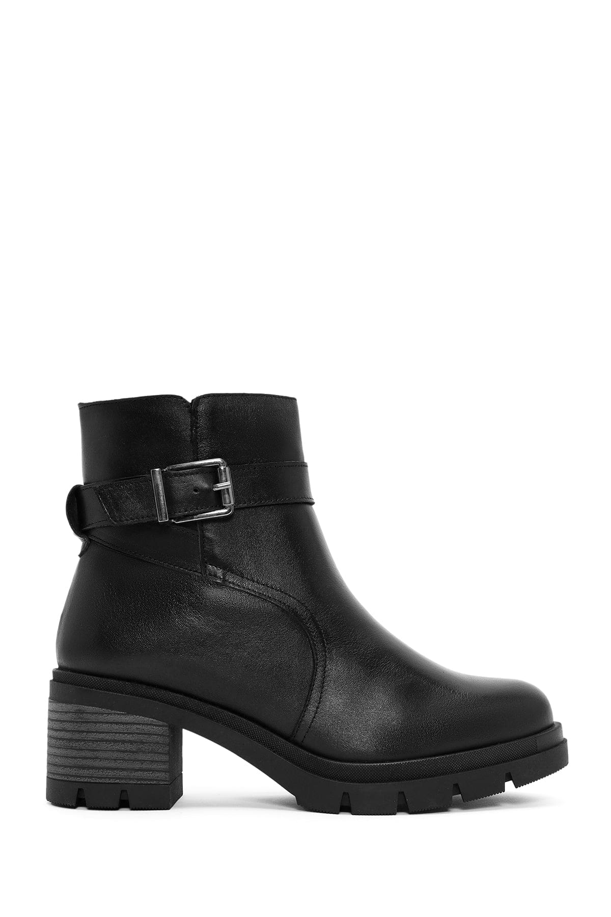 Kadın Siyah Fermuarlı Deri Topuklu Bot