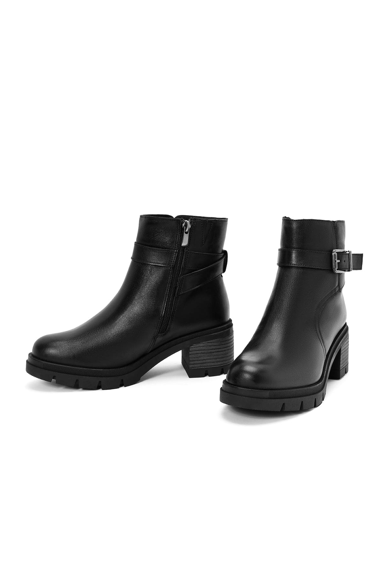 بوت پاشنه دار چرمی مشکی زیپ دار زنانه دری مد