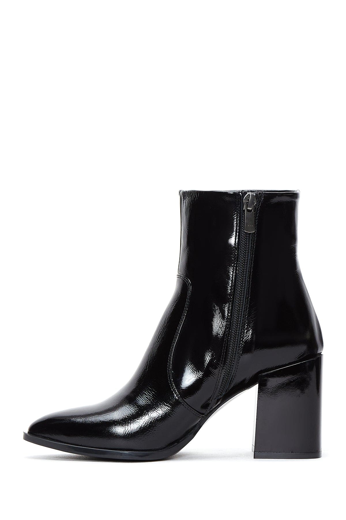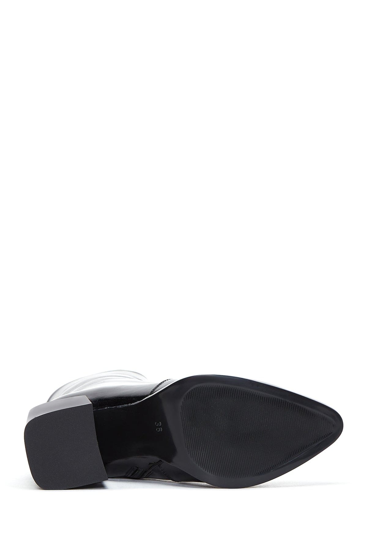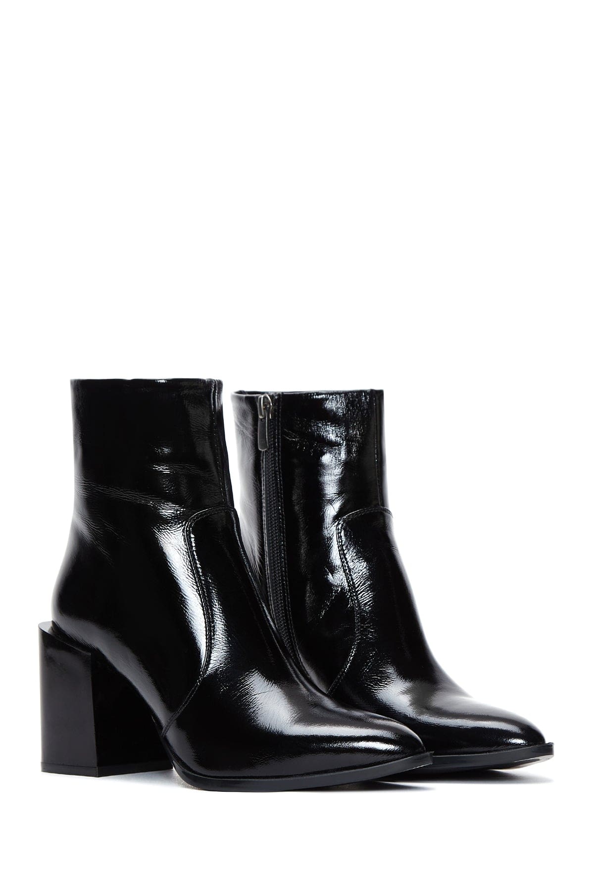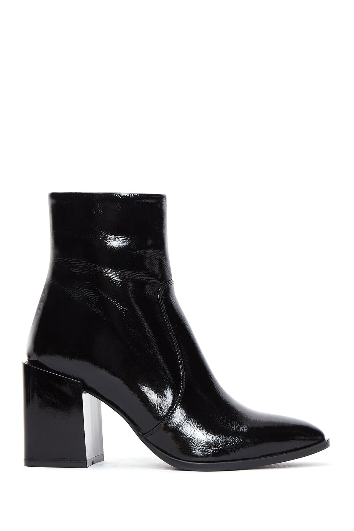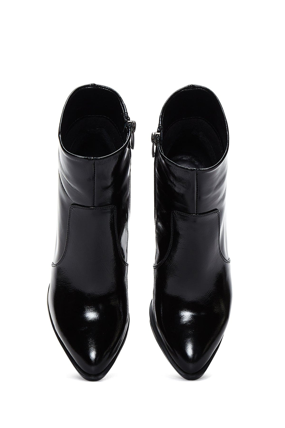 Kadın Siyah Fermuarlı Rugan Topuklu Deri Bot