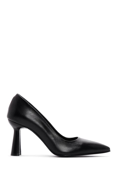 کفش پاشنه دار چرمی مشکی زنانه دری مد