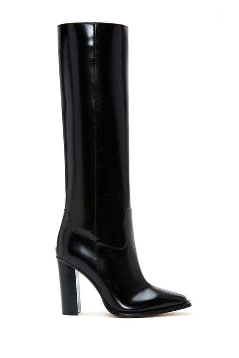 بوت پاشنه بلند چرم مشکی زنانه