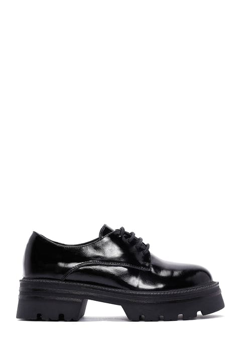 Kadın Siyah Rugan Deri Maskülen Loafer