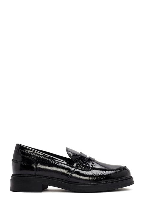 Kadın Siyah Rugan Deri Maskülen Loafer