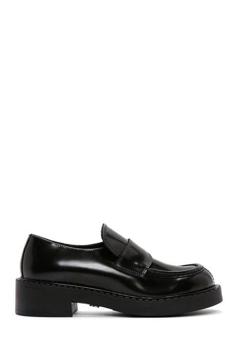 Kadın Siyah Rugan Deri Maskülen Loafer