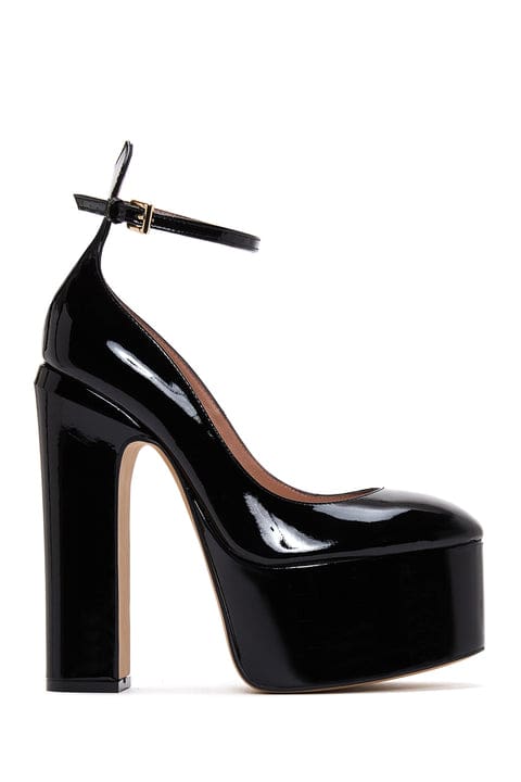 Kadın Siyah Deri Platform Topuklu Ayakkabı
