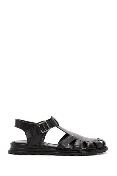 Kadın Siyah Bilekten Bantlı Deri Sandalet
