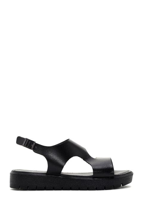 Kadın Siyah Bilekten Bantlı Deri Sandalet
