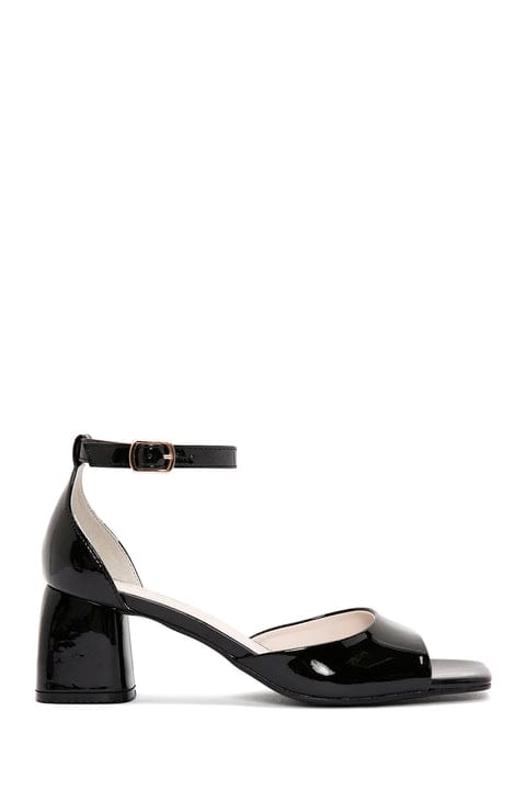 Kadın Siyah Bilekten Bantlı Topuklu Rugan Ayakkabı