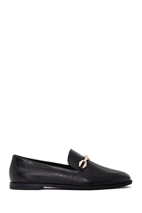 کفش راحتی چرمی سگک دار مشکی زنانه دری مد