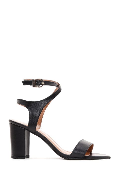 Kadın Siyah Deri Kalın Topuklu Sandalet