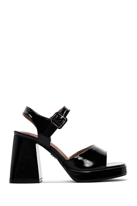 Kadın Siyah Rugan Kalın Topuklu Sandalet