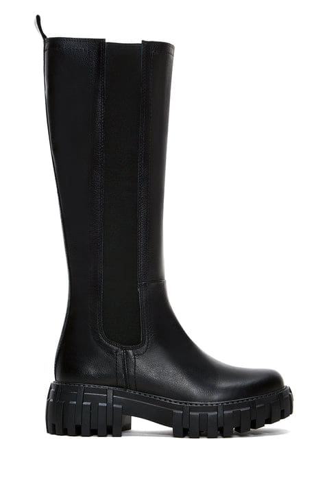 Kadın Siyah Deri Kalın Tabanlı Çizme