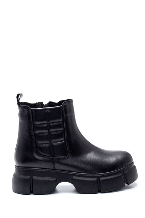 Kadın Siyah Deri Kalın Tabanlı Bot