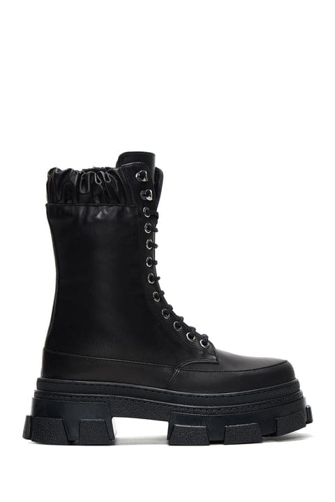 بوت زیره ضخیم چرمی مشکی زنانه دری مد