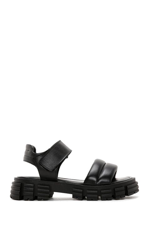 صندل زیره ضخیم چرمی مشکی زنانه دری مد