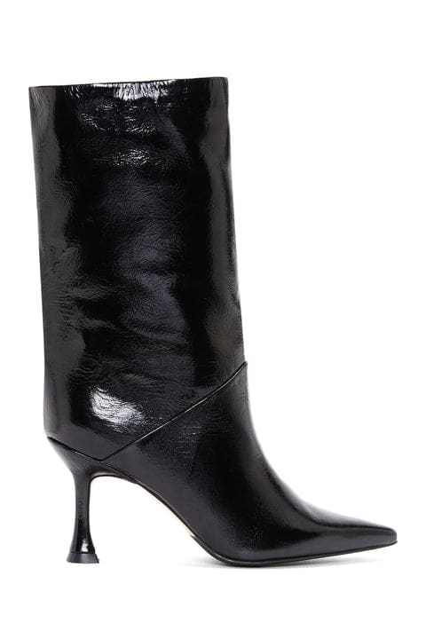بوت پاشنه نازک چرم مشکی زنانه دری مد